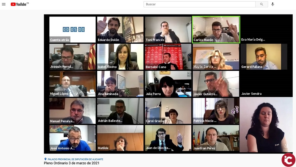 El pleno, celebrado de forma telemática, también ha aprobado por unanimidad el documento inicial del Reglamento del Consejo Social de la Provincia de Alicante, mientras que se ha rechazado, con los votos a favor de los grupos Popular y Ciudadanos, la abstención del PSOE y el voto en contra de Compromís, el recurso de reposición presentado por el portavoz de la formación valencianista, Gerard Fullana, contra los acuerdos de fiscalización de los grupos PP y Compromís de los ejercicios 2015 y 2016.