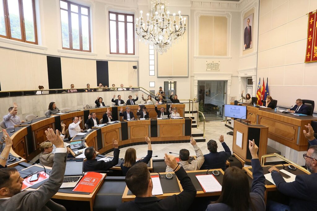 El pleno de la Diputación de Alicante ha aprobado esta mañana una declaración institucional de todos los grupos políticos en apoyo y solidaridad con las víctimas y damnificados por la DANA que la pasada semana asoló gran parte de la provincia de Valencia y en agradecimiento a los operativos de rescate y a los miles de voluntarios que se han volcado para ayudar ante esta tragedia.