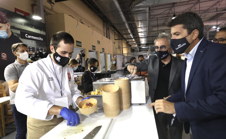 El presidente de la Diputación de Alicante, Carlos Mazón, ha participado esta mañana en la inauguración del certamen ‘Alicante Gastronómica. Estilo de vida mediterráneo’ que arranca hoy en IFA con un completo programa de experiencias culinarias para todos los públicos. Mazón, quien previamente ha visitado el taller infantil ‘Carmencita y los niños’ con las especias como ingredientes principales, ha tildado de “emocionante e ilusionante este día en el que volvemos a abrir al mundo la puerta de nuestra gastronomía”. Un sector que, según ha recordado el presidente, “lo ha pasado mal durante estos meses y ha sufrido muchas restricciones, algunas muy injustas, pero que vuelve a demostrar que en la provincia tenemos los mejores productos y tenemos a las personas que mejor los saben elaborar”.