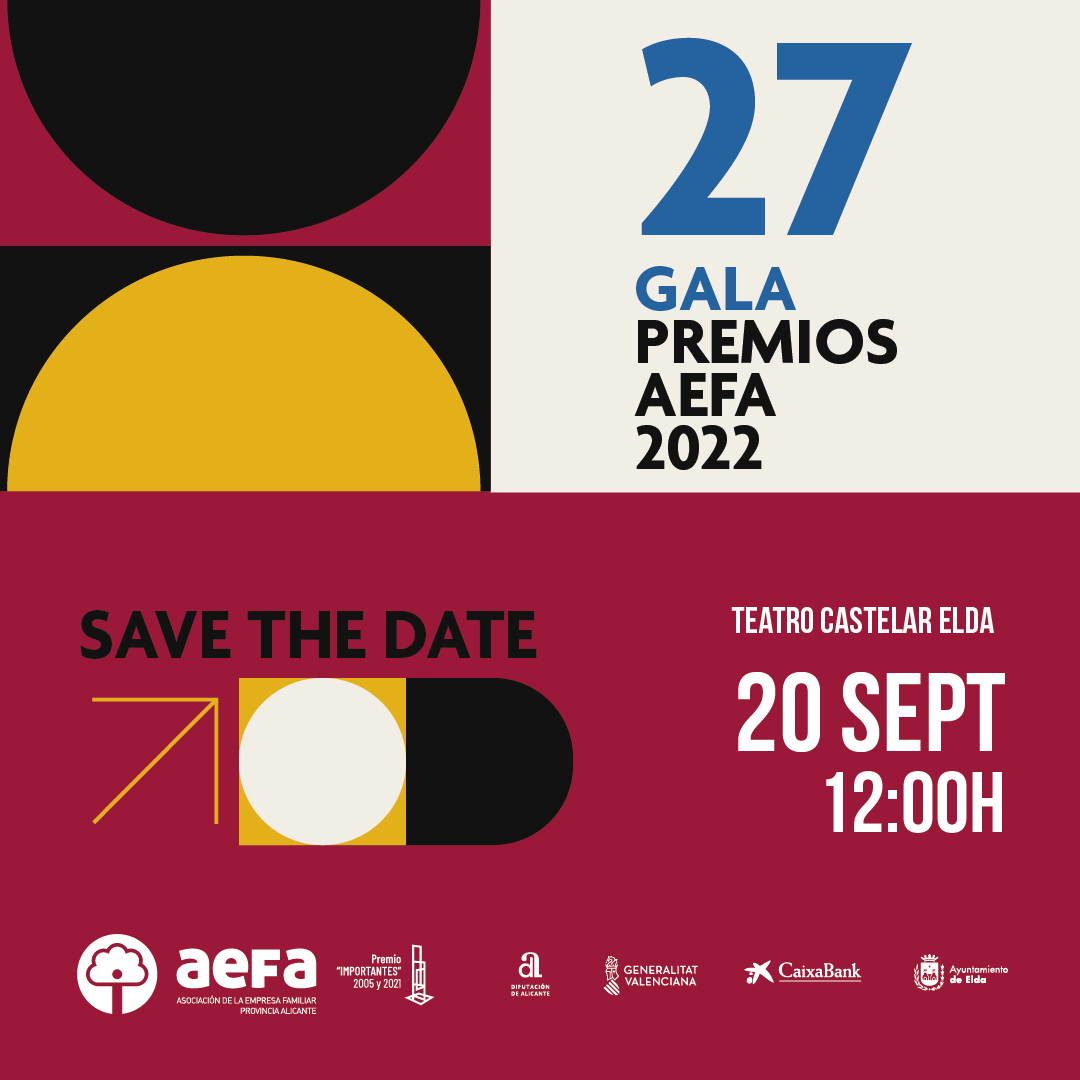 La Asociación de la Empresa Familiar de la provincia de Alicante (AEFA) celebrará el acto de entrega de la XXVII edición de los Premios AEFA 2022, el próximo martes 20 de septiembre. El president de la Generalitat, Ximo Puig, acudirá a la gala de los premios que tendrá lugar en el Teatro Castelar de Elda. Los premios cuentan con el patrocinio de la Generalitat y la Diputación Provincial de Alicante.