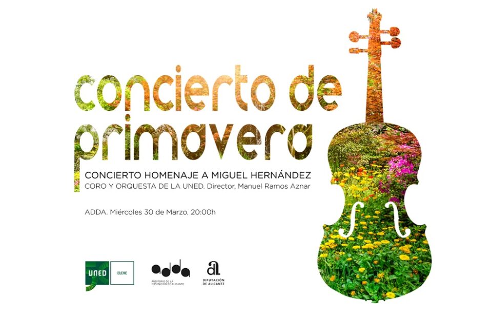 El Auditorio de la Diputación de Alicante acogerá el próximo 30 de marzo un concierto homenaje a Miguel Hernández a cargo del Coro y Orquesta de la UNED de Elche. La institución provincial culmina de esta forma los actos organizados para conmemorar el 80 aniversario de la muerte del poeta, cuyo legado ha podido visitarse durante estos últimos meses en la exposición “A plena luz” del Palacio Provincial.