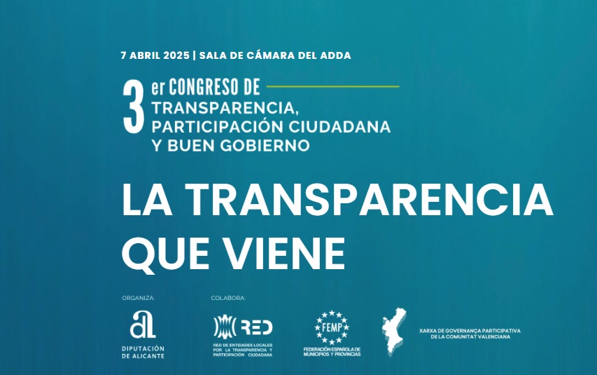 La Diputación de Alicante celebrará el próximo 7 de abril de 2025, el Tercer Congreso de Transparencia. El congreso se llevará a cabo en la Sala de Cámara del Auditorio de la Diputación de Alicante, con un horario de 09:00 a 14:00 h. La inscripción es gratuita, aunque está limitada al aforo del local, por lo que se recomienda a los interesados registrarse con antelación.