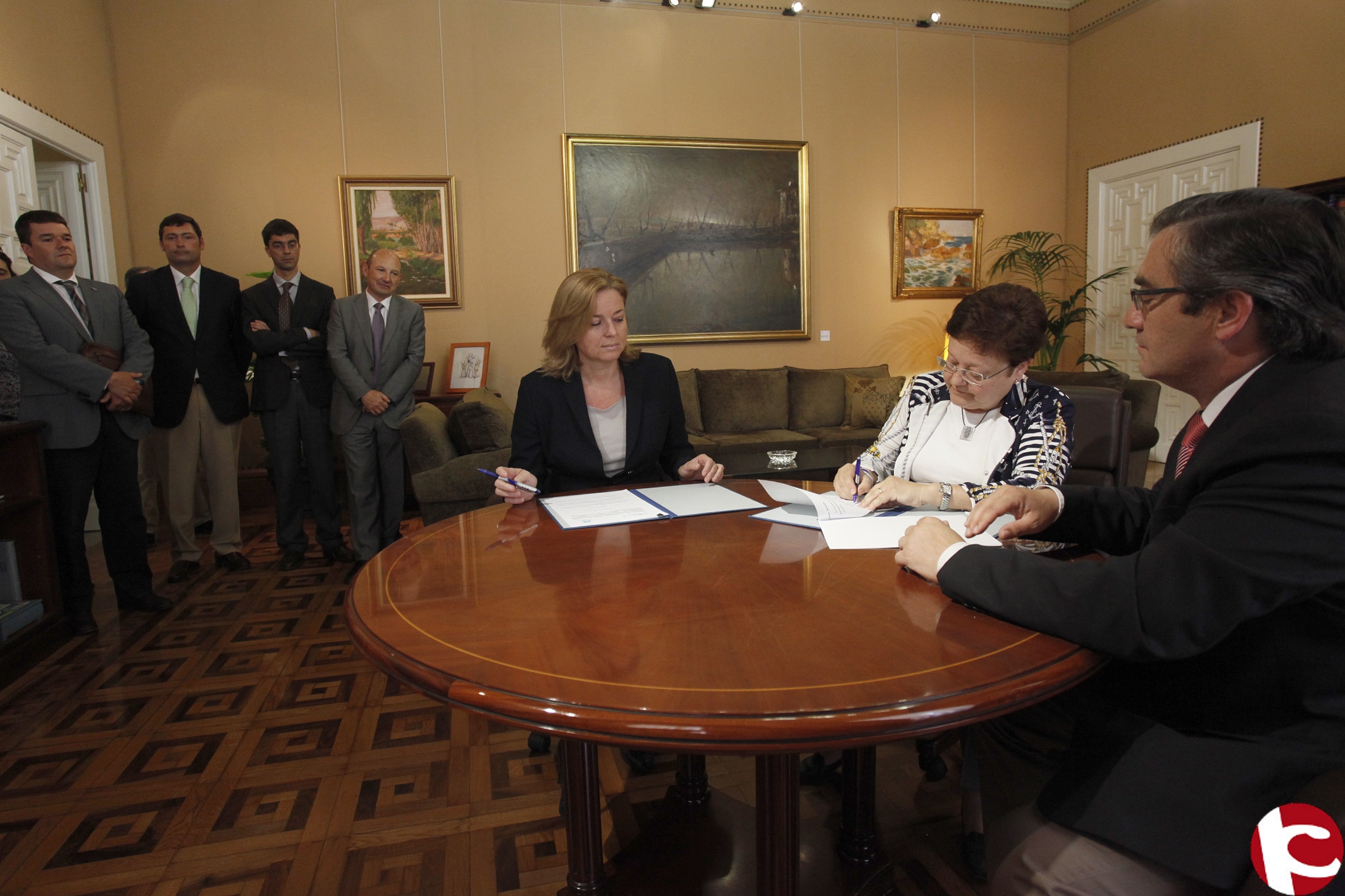 La presidenta de la Diputación de Alicante, Luisa Pastor, y la decana de la Demarcación de la Comunidad Valenciana del Colegio de Ingenieros, Mercedes Aviñó, han firmado esta mañana el convenio de colaboración que contempla también un servicio de asesoramiento permanente a los ayuntamientos sobre distintas tecnologías con el objetivo de implantar la movilidad sostenible. El acto ha contado con la presencia del diputado de Medio Ambiente Javier Sendra.