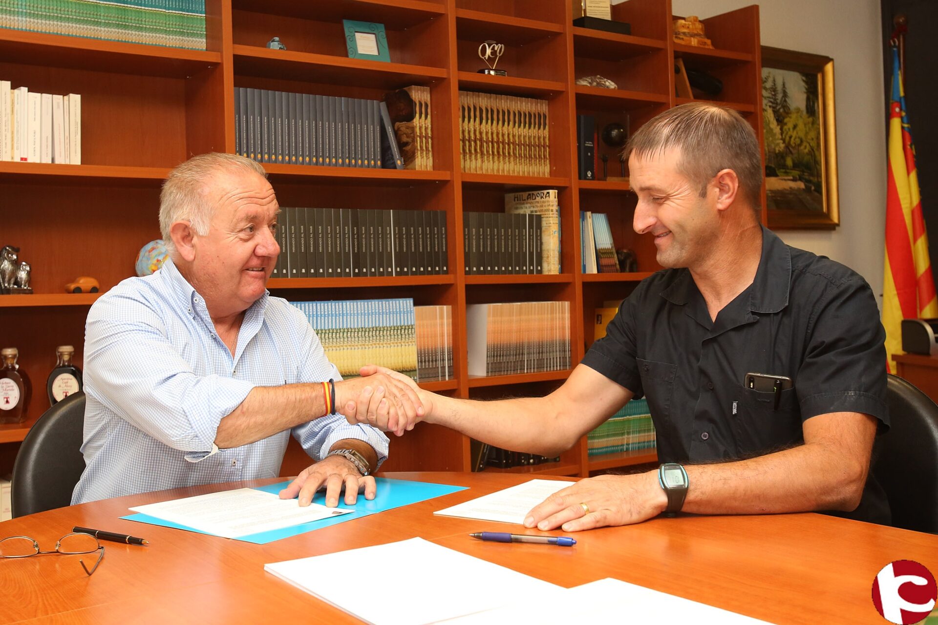 Sebastián Cañadas e Hilario Calabuig firman el convenio de colaboración, dotado con 7.500 euros y que contempla también la promoción del producto