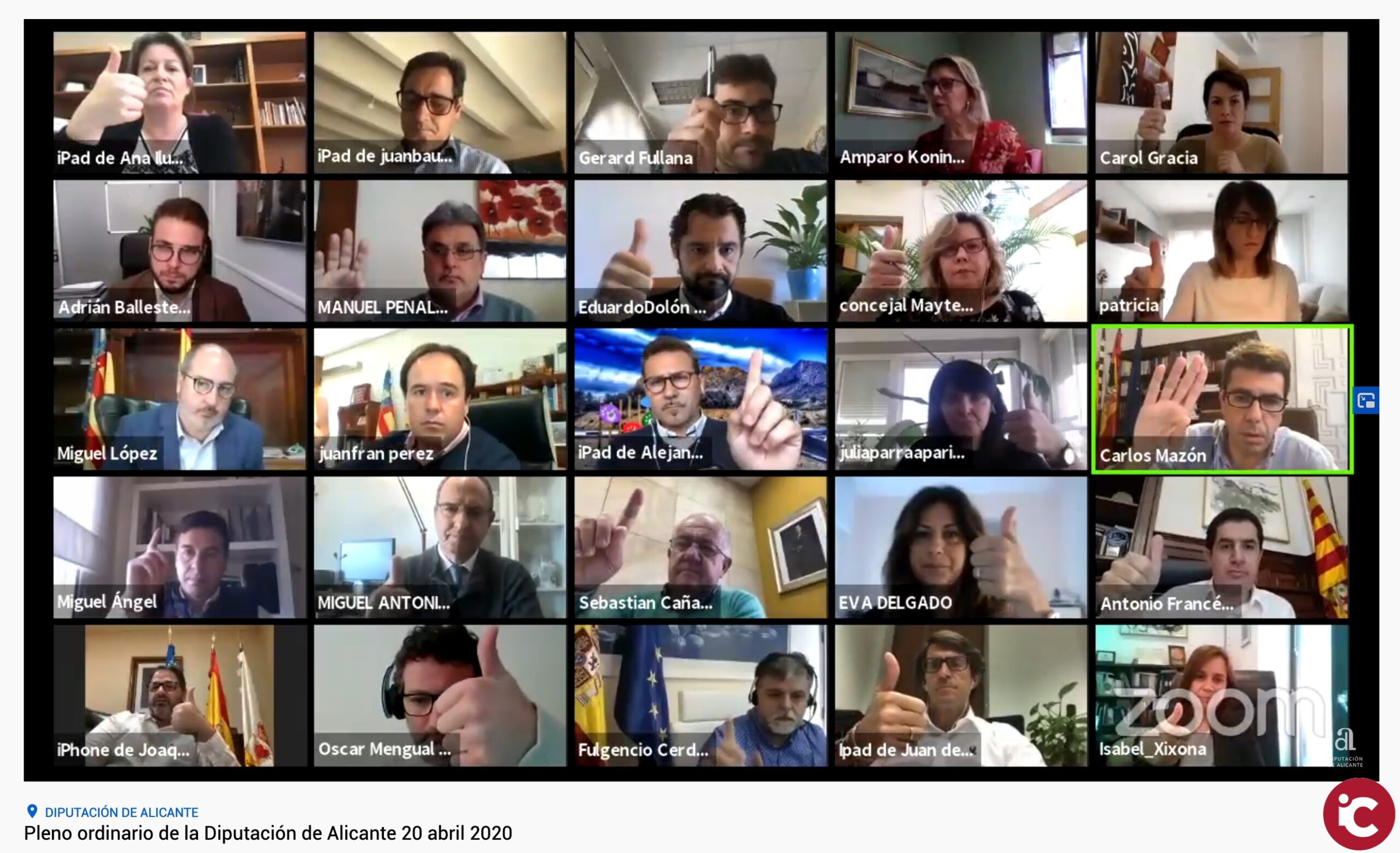 20-04-20.- La Diputación de Alicante readaptará su presupuesto con el objetivo de atender las necesidades surgidas de la crisis del coronavirus e impulsará, desde el consenso y el trabajo de todos los grupos políticos, las medidas necesarias para desarrollar un Plan de Impulso Económico de la provincia en cooperación con los ayuntamientos.