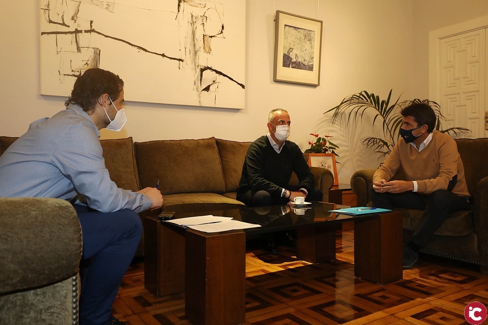 27-01-21.- La Diputación de Alicante incorporará a la CEV Alicante en el Consejo Social de la Provincia, tal y como se ha acordado en el encuentro que esta mañana han mantenido el presidente de la institución, Carlos Mazón, y el diputado de Economía y Presidencia, Eduardo Dolón, con el presidente en Alicante de la Confederación Empresarial de la Comunitat Valenciana (CEV), Perfecto Palacio.