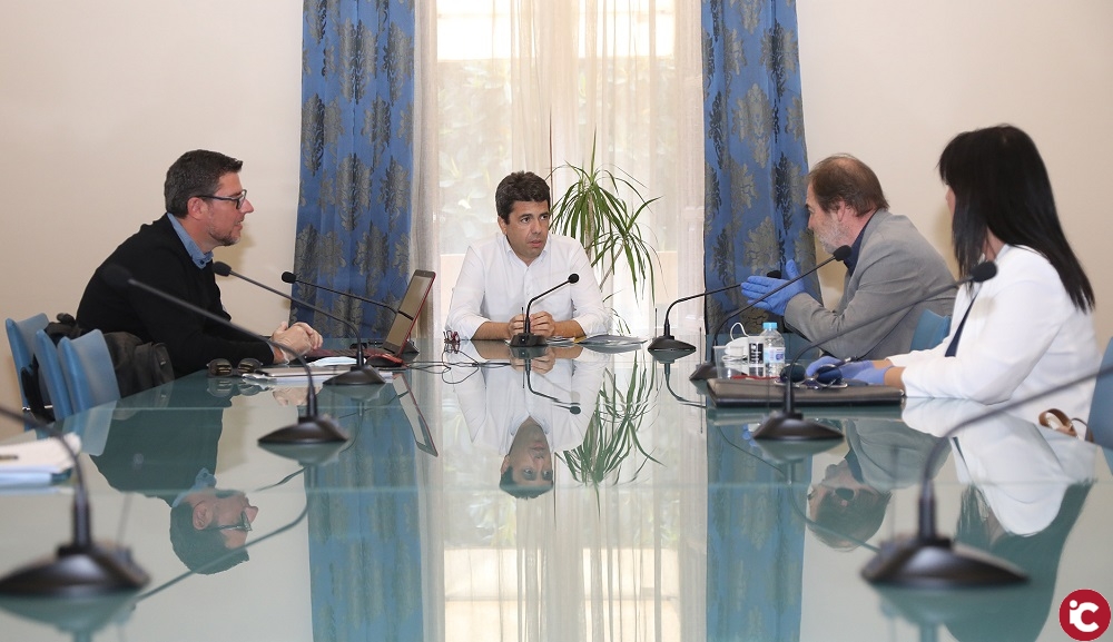 11-05-20.- El presidente de la Diputación de Alicante, Carlos Mazón, y el diputado de Infraestructuras, Javier Gutiérrez, se han reunido esta mañana con el presidente de la Federación de Obras Públicas de la Provincia de Alicante (FOPA), Javier Verdú, a quien han trasladado el importante impulso que el plan Planifica tendrá en este sector, ya que el mismo generará en los próximos años una inversión pública de más de cien millones de euros. Además, se prevé que, gracias a las más de 400 obras que se van a ejecutar, se creen 5.000 empleos en la construcción, además de 1.000 servicios técnicos de ingenieros, aparejadores o arquitectos.