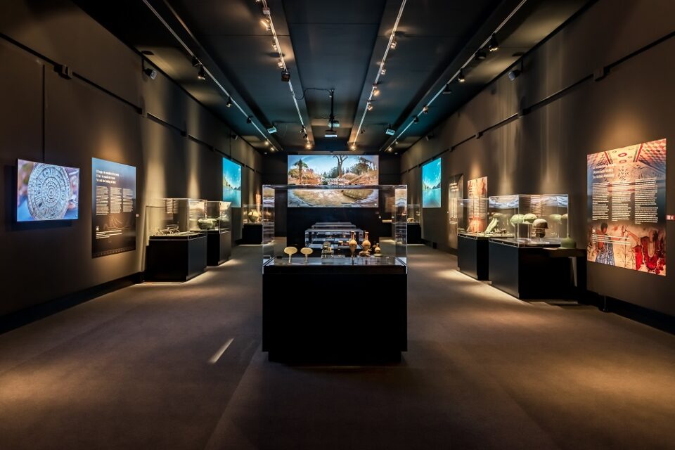 En la exposición se pueden admirar valiosas piezas como la diadema de Orbetello, las pulseras de la necrópolis de Bisenzio, las urnas de Ulises, de las Sirenas y del Rapto de Proserpina de Volterra o el sarcófago masculino de la necrópolis de Rosavecchia en la Toscana. Con el objetivo de llegar a un público amplio, la exposición incorpora material gráfico y didáctico que incluye proyecciones audiovisuales y herramientas interactivas. Además, las piezas originales están acompañadas de imágenes y textos explicativos creados a partir de una rigurosa documentación científica.