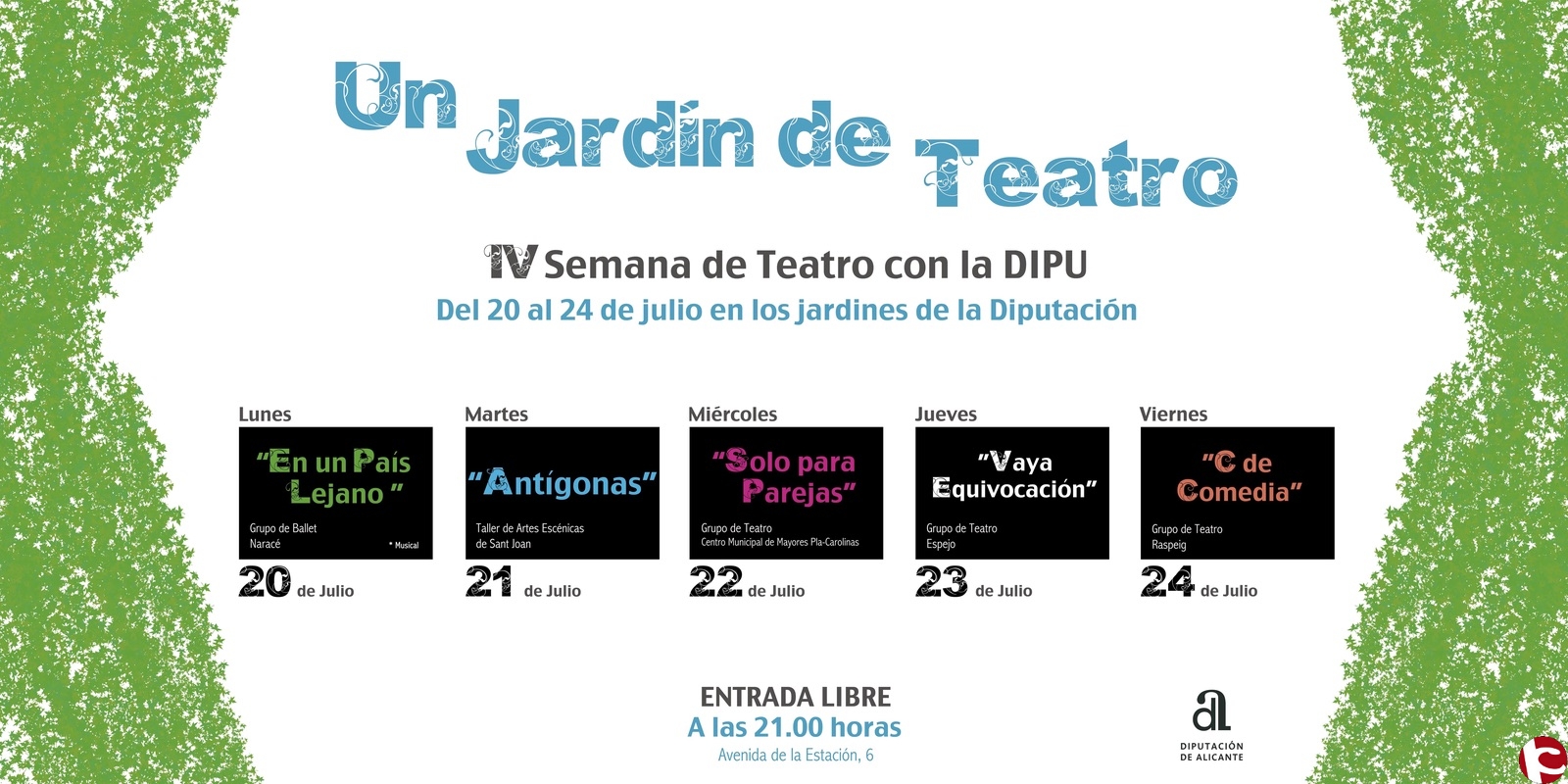 Esta propuesta teatral se enmarca en el programa de verano que la Diputación de Alicante ha impulsado en los jardines del Palacio Provincial y que ha incluido un ciclo de cine que se desarrolló del 6 al 10 de julio.