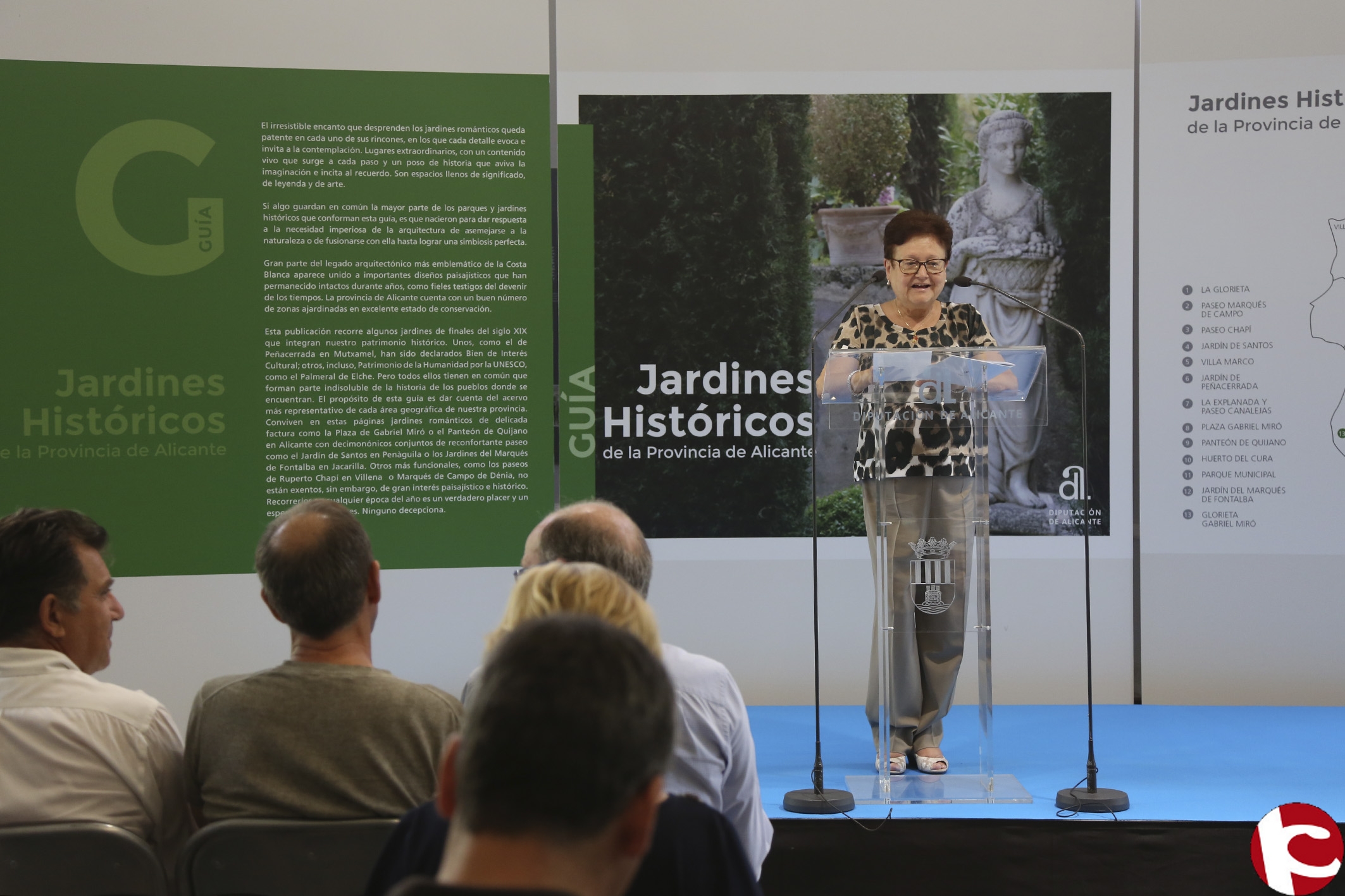 03-07-15.- La presidenta de la Diputación de Alicante Luisa Pastor ha presentado esta mañana una guía con toda la información actual y datos históricos sobre trece jardines singulares de la provincia que permanecen abiertos al público y datan, en su mayoría, del siglo XIX. Al acto ha asistido también el ingeniero agrónomo y paisajista alicantino, José Luis Romeu.