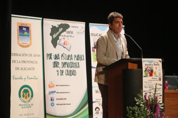 Mazón ha destacado la “implicación” y “responsabilidad” de las madres y padres que defienden su “protagonismo en la educación de sus hijos” en un momento en el que la “libertad educativa está siendo agredida por quienes precisamente tienen que tutelarla”, en referencia a las medidas educativas que viene adoptando la Conselleria de Educación de la Generalitat.