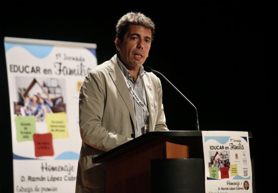 El presidente de la Diputación de Alicante, Carlos Mazón, ha realizado hoy un llamamiento en defensa de la libertad educativa y lingüística, del distrito único escolar y de la no segregación entre educación concertada y pública durante su intervención en la I Jornada ‘Educar en Familia’, organizada por el Ayuntamiento de Alicante en coordinación con la FAPA Gabriel Miró.