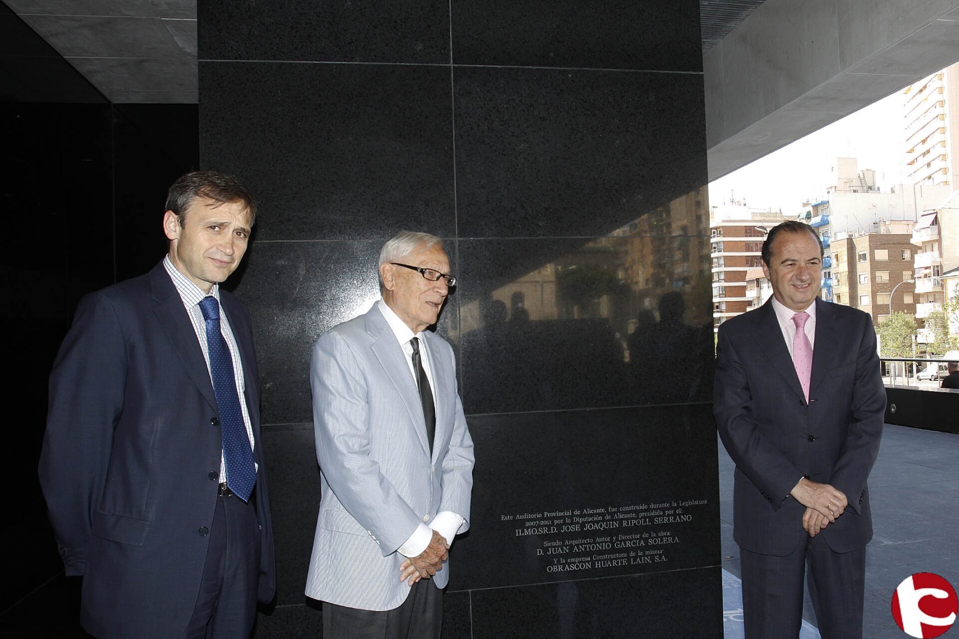 El presidente de la Diputación de Alicante, Joaquín Ripoll, ha firmado hoy el acta de recepción del Auditorio Provincial de Alicante, junto al arquitecto-director de la obra, Juan Antonio García Solera.