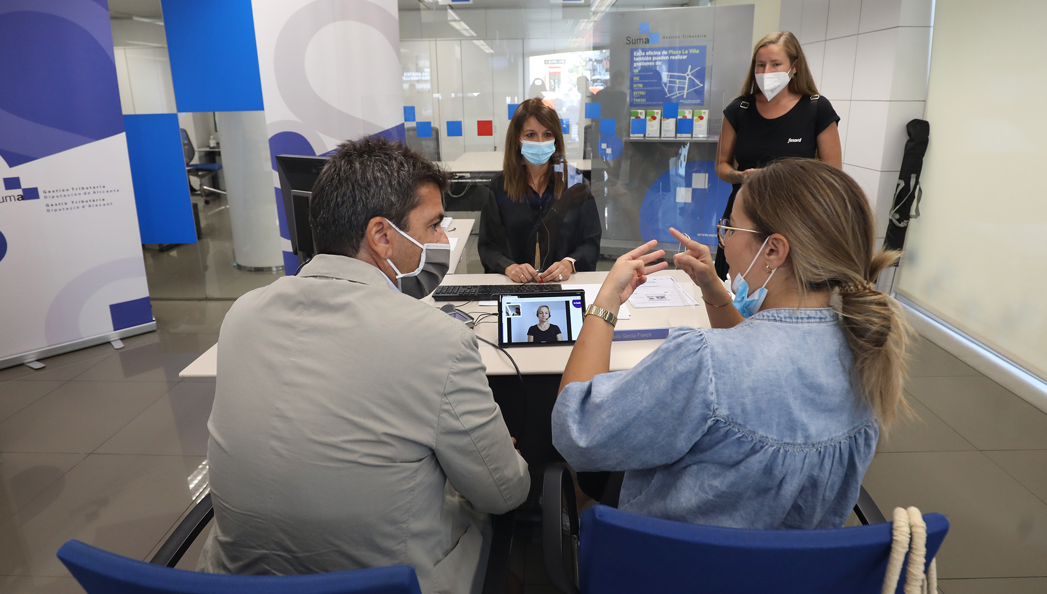 18-10-21.- Suma Gestión Tributaria ofrecerá en sus oficinas un servicio de vídeo interpretación en lengua de signos para garantizar una atención adecuada a las personas con dificultades auditivas en colaboración con la Federación de Personas Sordas de la Comunitat Valenciana (FESORD)