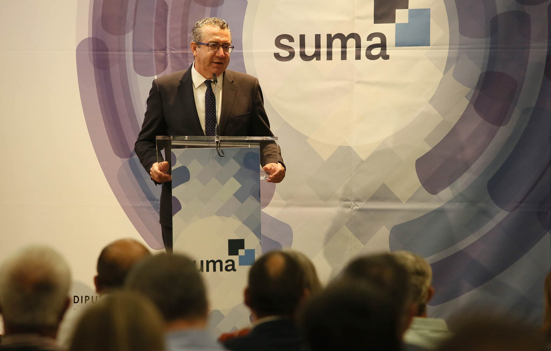 El presidente de la Diputación de Alicante, Toni Pérez, ha presidido esta mañana el acto organizado por SUMA para dar la bienvenida a las nuevas corporaciones locales e informar de la labor del organismo tributario para garantizar la sostenibilidad financiera de los ayuntamientos.