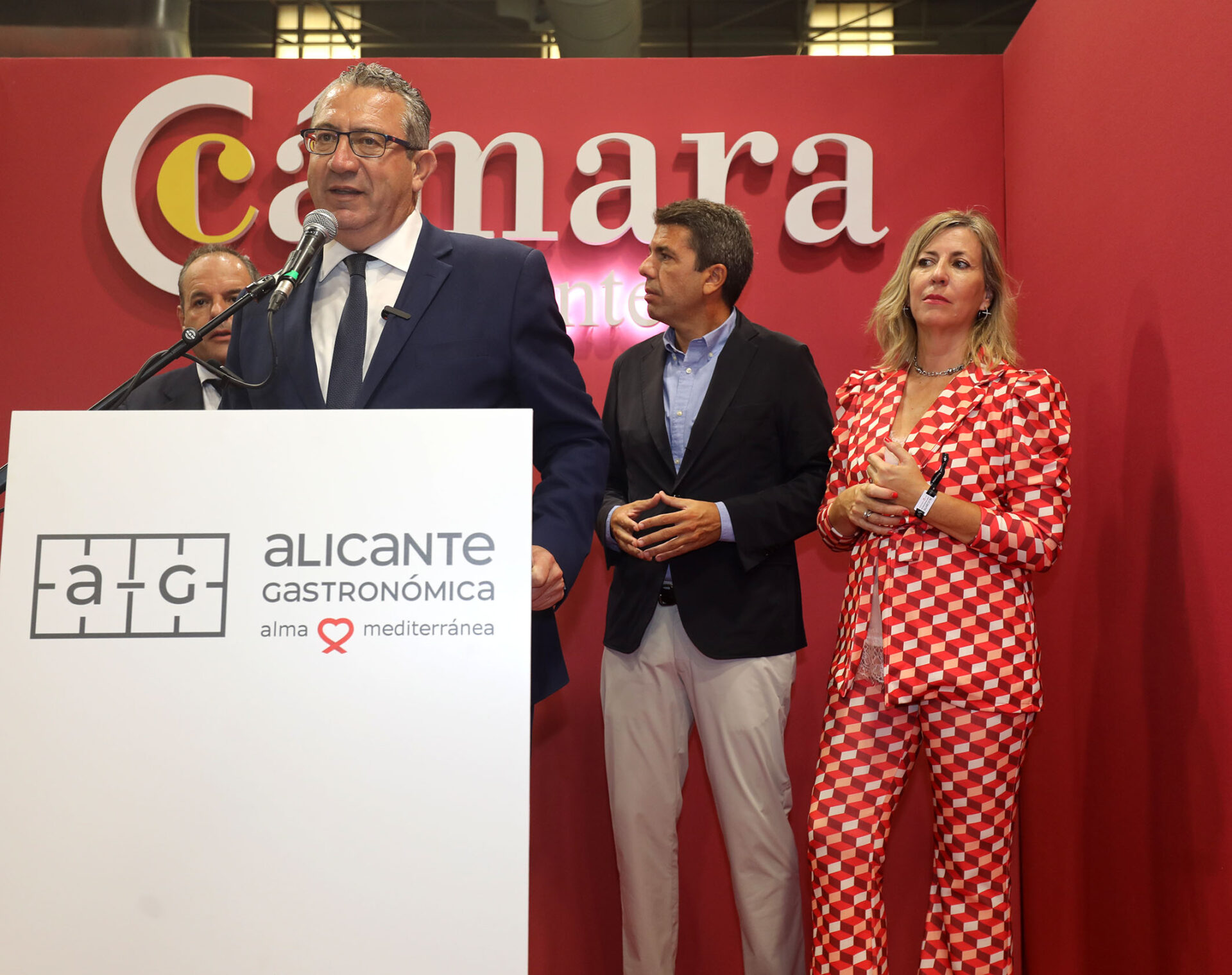El acto, que ha inaugurado el president de la Generalitat Valenciana, Carlos Mazón, ha contado también con la presencia de la presidenta del certamen ‘Alicante Gastronómica’, Gema Amor, y del presidente de la Cámara de Comercio de Alicante, Carlos Baño.