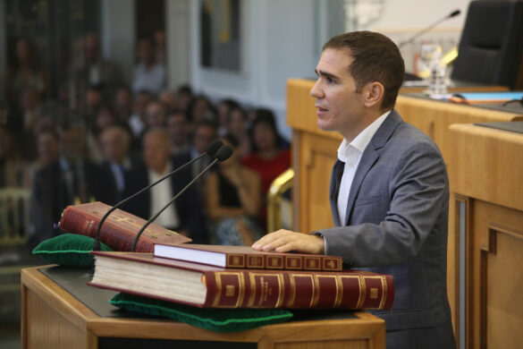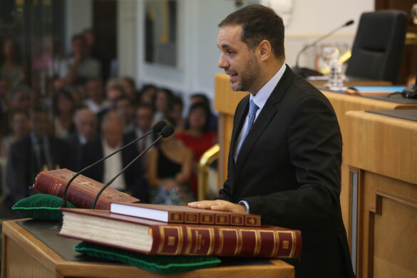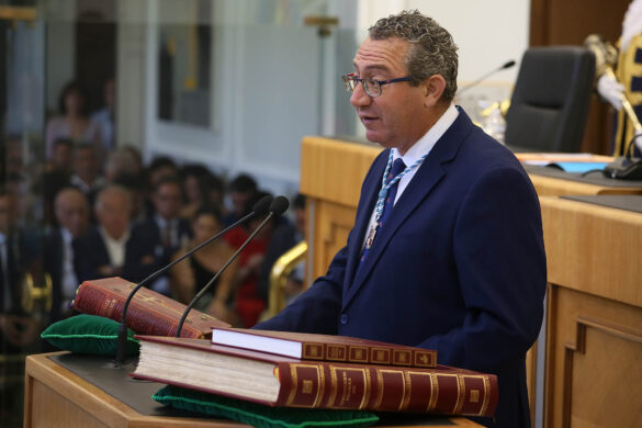 Tras constituirse la Mesa de Edad, todos los diputados han tomado posesión de su nuevo cargo y se ha procedido a la elección de la Presidencia. El alcalde de Benidorm, Toni Pérez, diputado del Partido Popular por la comarca de la Marina Baixa, ha resultado elegido nuevo presidente de la Diputación de Alicante por mayoría absoluta. Junto a él, han presentado su candidatura el diputado socialista, Vicente Arques, la diputada de Vox, Gema Alemán, y el diputado de Compromís, Ximo Perles.