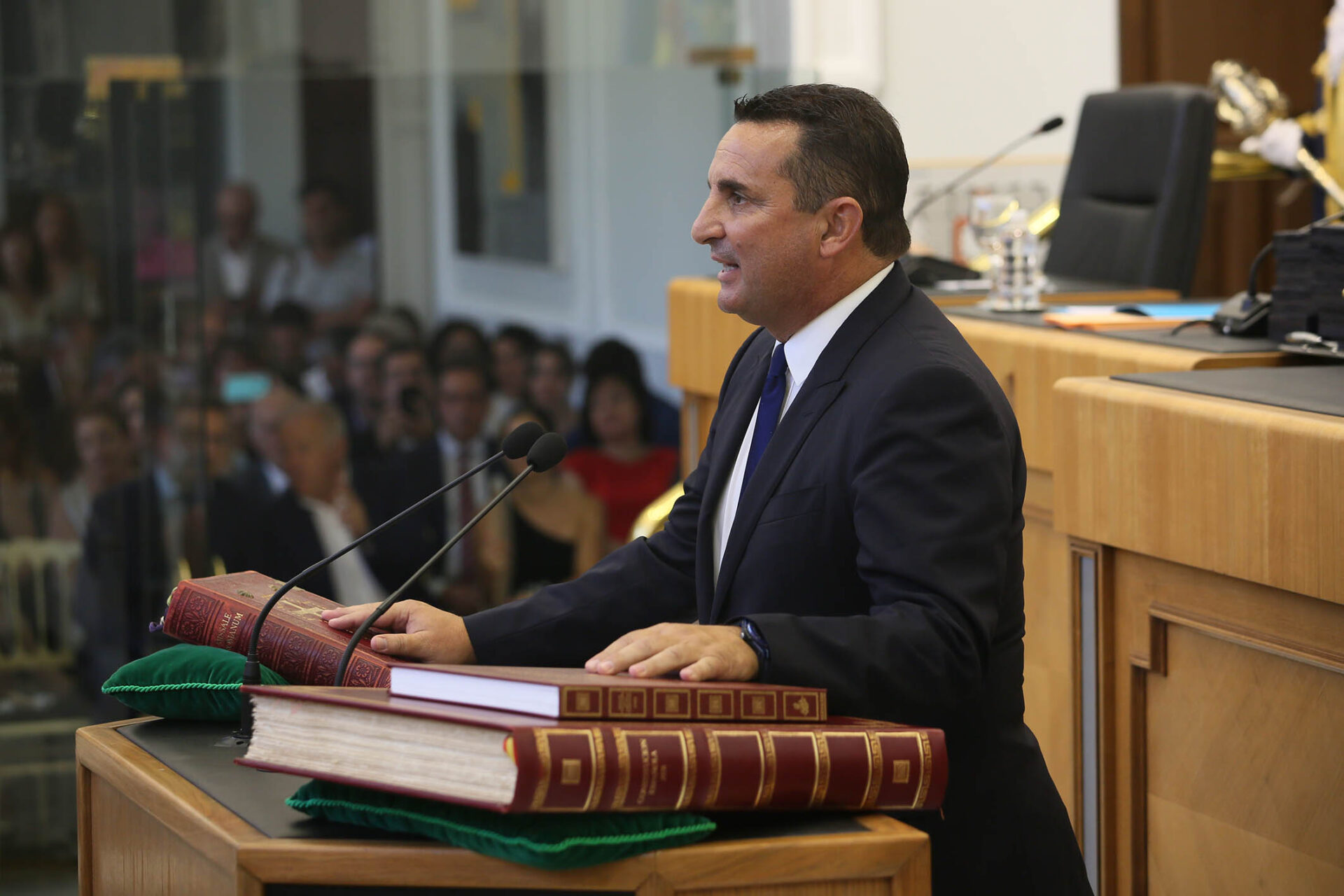Tras constituirse la Mesa de Edad, todos los diputados han tomado posesión de su nuevo cargo y se ha procedido a la elección de la Presidencia. El alcalde de Benidorm, Toni Pérez, diputado del Partido Popular por la comarca de la Marina Baixa, ha resultado elegido nuevo presidente de la Diputación de Alicante por mayoría absoluta. Junto a él, han presentado su candidatura el diputado socialista, Vicente Arques, la diputada de Vox, Gema Alemán, y el diputado de Compromís, Ximo Perles.