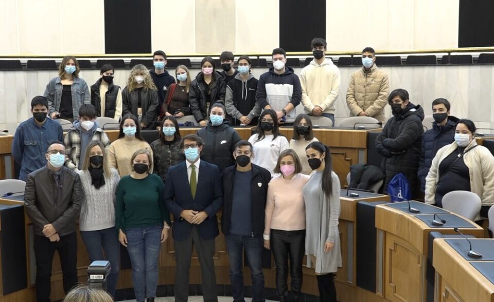 Un grupo de alumnos y alumnas del IES Sixto Marco de Elche acudía a la Diputación de Alicante para recoger sus carnets que les acreditan como embajadores de la Unión Europea en la provincia de Alicante. El encargado de recibirlos en el Palacio de la Diputación y de entregarles los carnets fue el diputado provincial Juan de Dios Navarro.