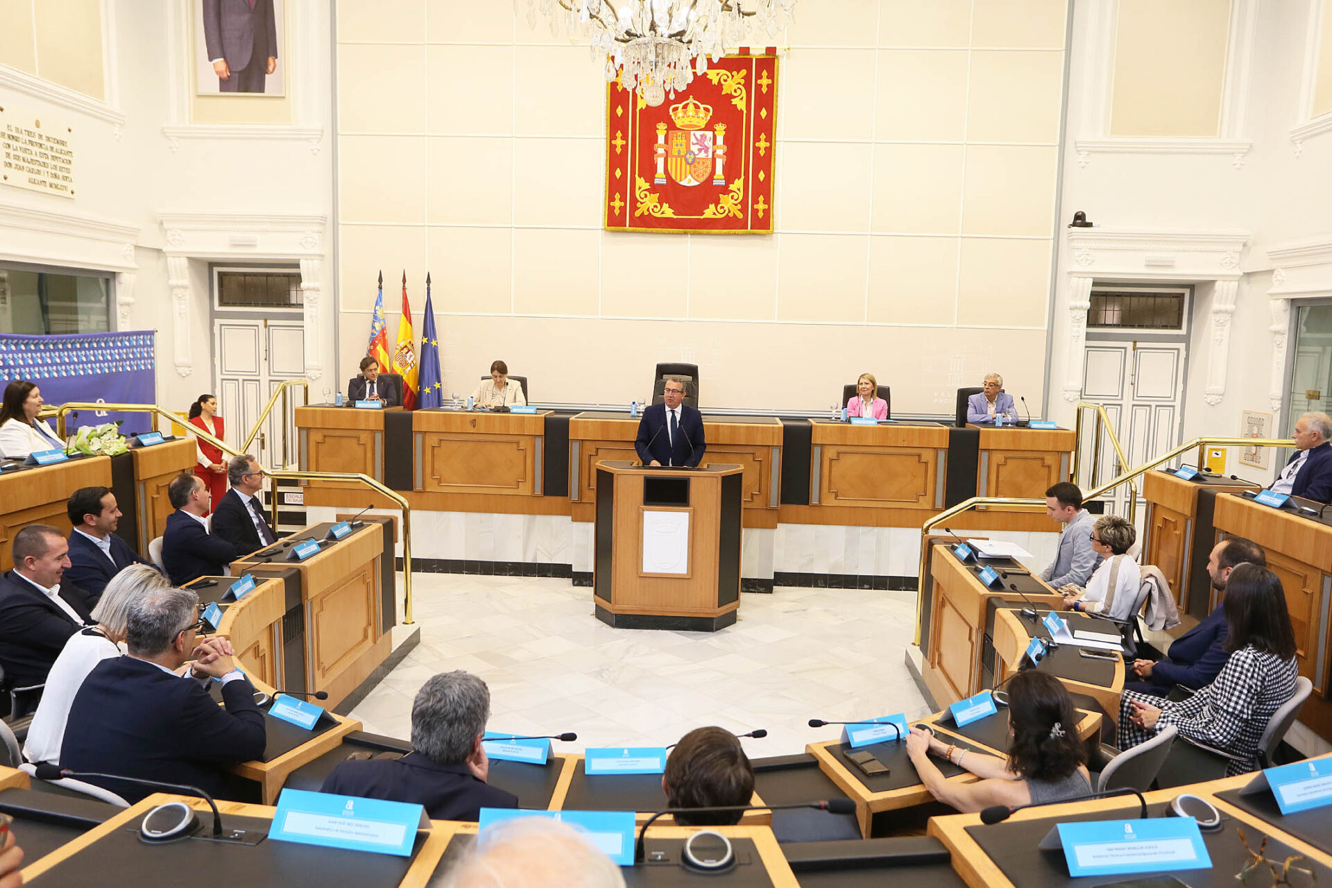 Los nietos de Fernando Albi, el director general de Administración Local, José Antonio Redorat, la vicepresidenta primera, Ana Serna, los diputados Juan de Dios Navarro, Carlos Pastor, José Antonio Bermejo, Antonio Bernabeu, Lourdes Llopis, Paco Cano, Arturo Poquet y Gema Alemán, así como los miembros del jurado, han asistido también a esta ceremonia celebrada en el Salón de Plenos.