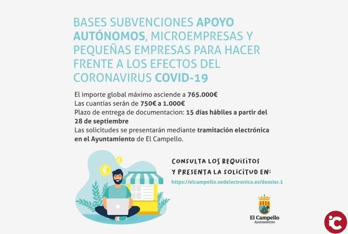 Microempresas, pequeñas empresas y autónomos de El Campello tienen derecho a recibir entre 750 y 1.000 euros de ayuda directa. Se recuerda que son subvenciones directas y extraordinarias para hacer frente a los efectos que la pandemia sanitaria ha desencadenado en la economía local. La finalidad es proteger el interés general, actuando directamente sobre las personas físicas y jurídicas más afectadas para afrontar la situación.