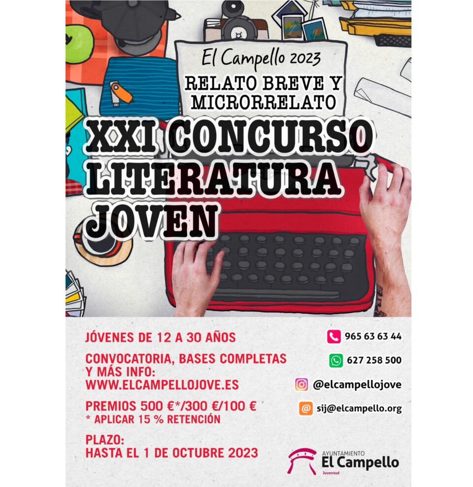 Los participantes pueden entregar sus obras hasta el 1 de octubre. Los trabajos se presentarán en el Servicio de Información Juvenil, que este verano se ha trasladado a la biblioteca. En el caso de envío por correo postal, debe ser dentro de las fechas establecidas con la siguiente dirección: XXI Concurso de Literatura Joven: Relato Breve y Microrrelato. Servicio de Información Juvenil. Centro Social “El Barranquet” 1ª planta. Avenida de la Estación, núm. 16. 03560 El Campello.