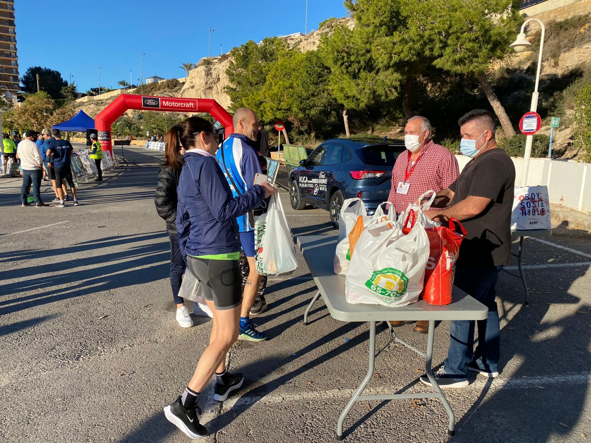 Mañana soleada, ambiente deportivo muy familiar, y cientos de kilos de solidaridad. En la mañana del pasado domingo, se celebró con éxito de participación la media maratón y cuarto de maratón de El Campello, una prueba deportiva reunió a 700 corredores y a muchos más familiares y amigos que durante todo el recorrido les han animado para terminar la carrera.
