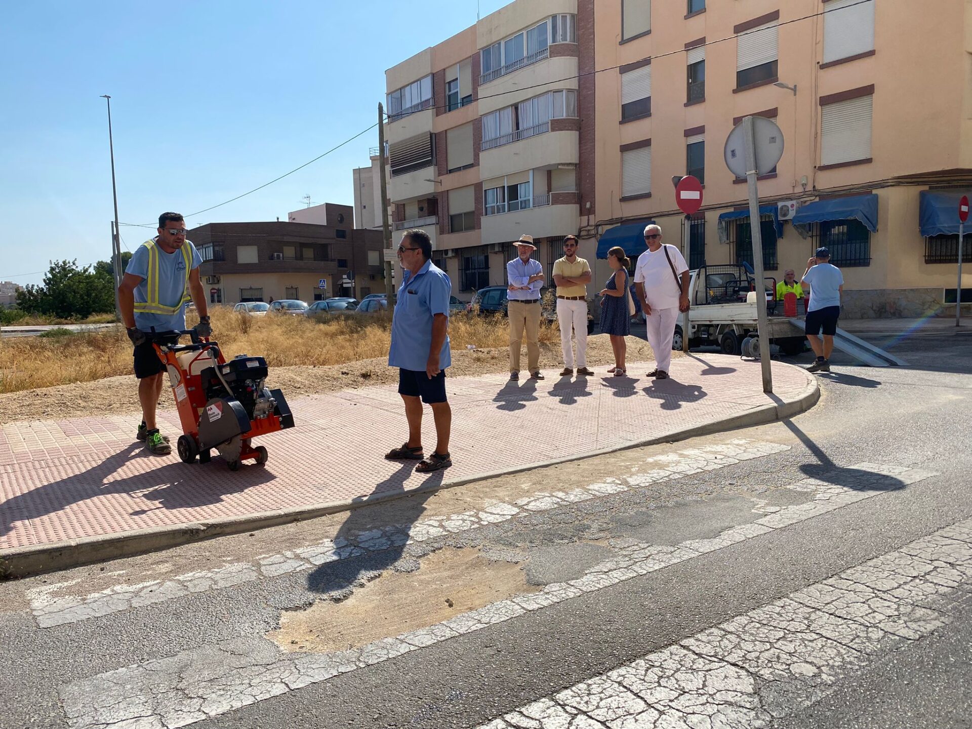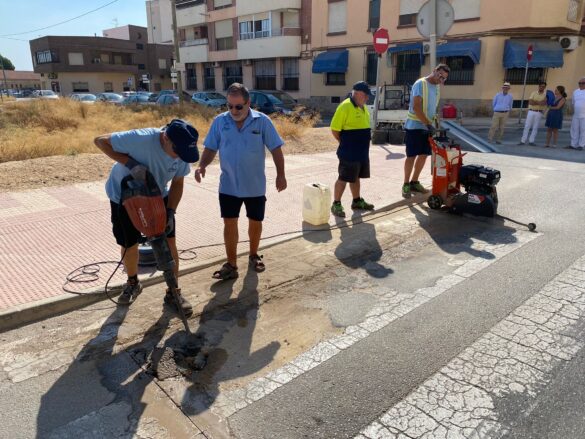 De esta forma, a diario la maquinaria se desplazará a todas las áreas urbanas de forma aleatoria, para que en la primera semana de septiembre la operación concluya con los objetivos cubiertos. Los trabajos requieran maquinaria específica, primero para cortar el asfalto alrededor de los socavones, que se vacían del todo para proceder al inyectado de asfalto líquido que repara el firme de forma duradera. Alcalde y concejal han presenciado hoy al inicio de las obras, que complementan la ‘operación asfalto’ que se desarrolla de forma paralela en 57 viales del municipio.