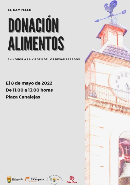 Donación de alimentos en honor a la Virgen de los Desamparados y a beneficio de Cáritas. La Junta Festera de Moros y Cristianos de El Campello que preside Marga Sebastià y la concejalía de Fiestas y Tradiciones que dirige Cristian Palomares (PP), han decidido reconvertir la tradicional ofrenda floral a la patrona durante la celebración del Mig Any en una jornada solidaria de donación de alimentos para intentar llenar las despensas de Cáritas, organización de la que dependen para subsistir más de un centenar de familias del municipio.