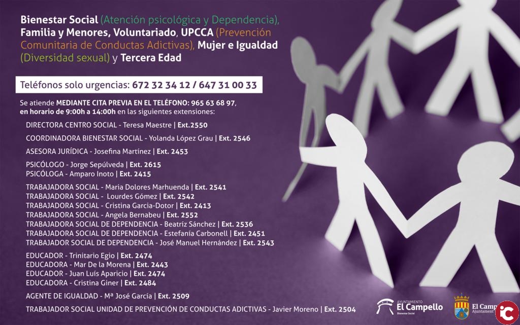 Además, la concejalía ha informado que ya se ha realizado una nueva propuesta de gasto de 2.210 euros, una nueva ayuda en trámite que en breve será adjudicada a nuevos demandantes que atraviesan por situaciones económicas de gran dificultad. Todas personas que deseen contactar con la concejalía de Bienestar Social, podrán hacerlo a través de los números de teléfono recogidos en el área de Bienestar Social de la página web del Ayuntamiento de El Campello, a través del siguiente enlace: http://www.elcampello.es/index.php?s=areas&id=11.