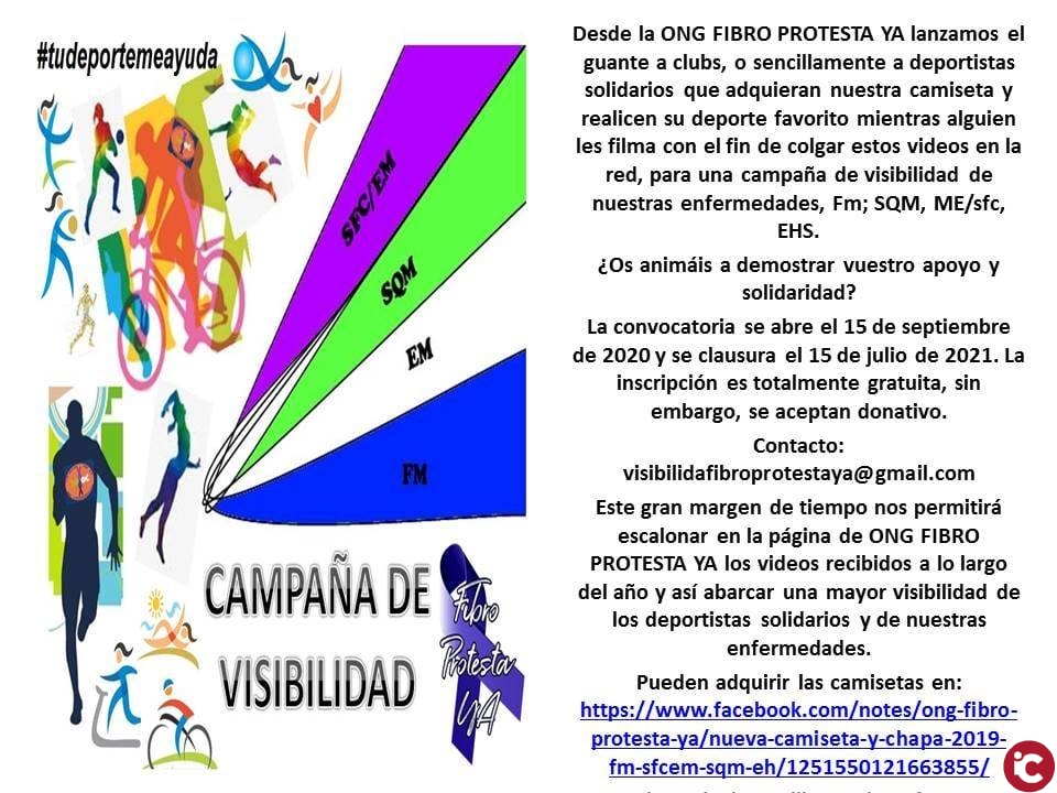 Si colaboras con #tudeportemeayuda de #FibroProtestaYa estarás ayudando a visibilizar la Fibromialgia, Encefalomielitis Miálgica/SFC, SQM y la Electrohipersensibilidad. Porque no todas las diversidades funcionales son visibles, te animamos a colaborar con esta iniciativa que estará en marcha hasta el próximo 15 de julio, a través de la dirección electrónica de contacto visibilidafibroprotestaya@gmail.com