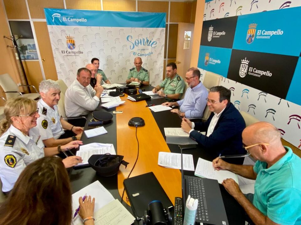 Presidida por el alcalde Juanjo Berenguer, esta semana se ha reunido la Junta Local de Seguridad de El Campello, en la que están representados Ayuntamiento, Subdelegación del Gobierno, Policía Local, Guardia Civil, Policía Nacional y Policía Autonómica. Los expertos en seguridad coincidieron en que dos factores han sido y son determinantes para situar a El Campello en la categoría de “municipio muy seguro”: las cámaras de control instaladas de norte a sur por el Ayuntamiento, y la constante colaboración entre Policía Local y Guardia Civil, que ha permitido esclarecer delitos y, sobre todo, prevenir que se cometan.