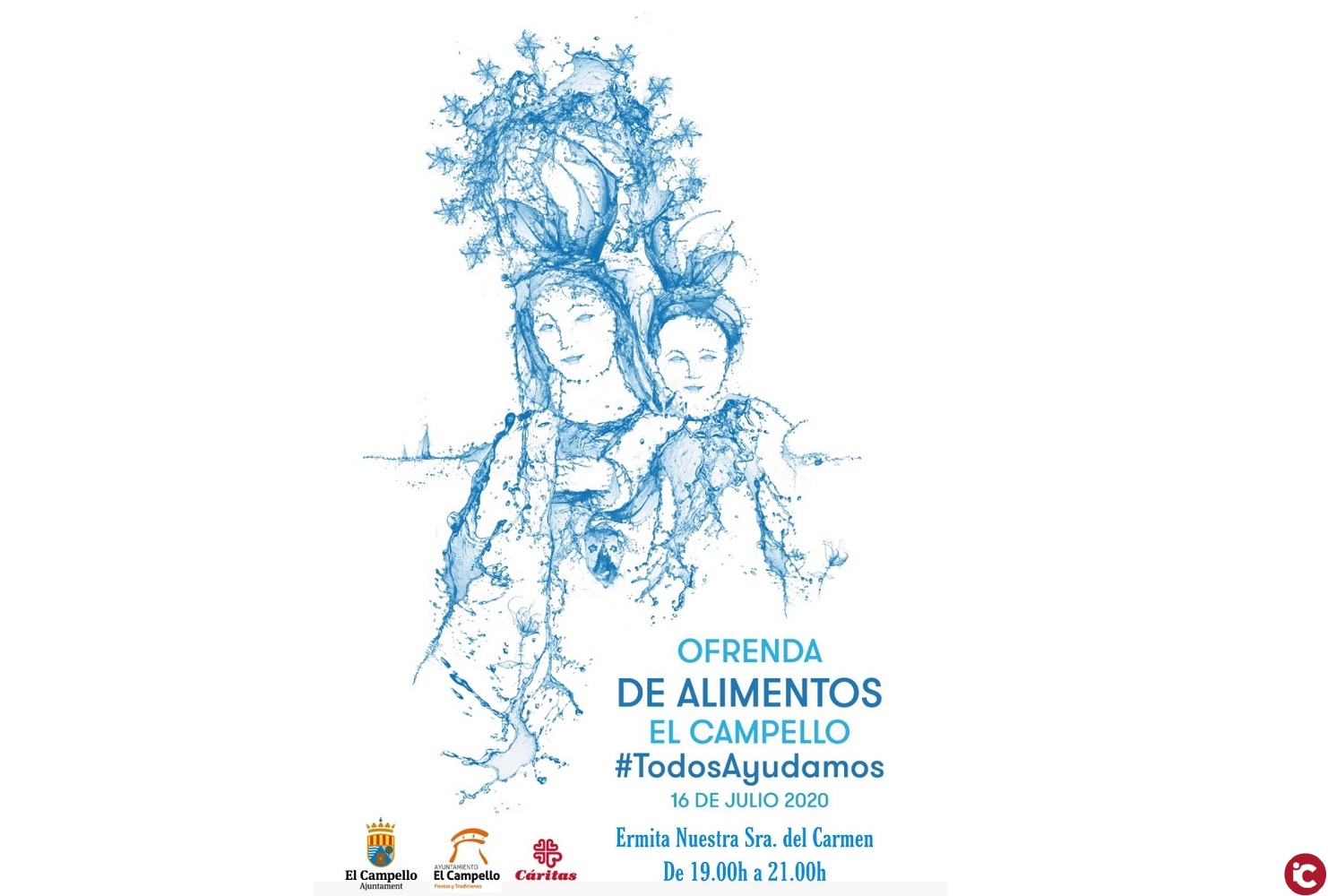 Este año, la festividad de la Virgen del Carmen del 16 de julio será diferente en El Campello. Tras la decisión de suspender todos los actos que tradicionalmente se celebran con una alta participación ciudadana, en esta ocasión el programa se limita a una misa oficial el mismo día 16 en la Ermita de Nuestra Señora del Carmen, con aforo reducido y sujeta a todas las medias de seguridad por el COVID-19 (distanciamiento social y mascarilla obligatoria), y una ofrenda de alimentos para nutrir las despensas del Cáritas, organizada en sustitución de la tradicional ofrenda floral a la Virgen.