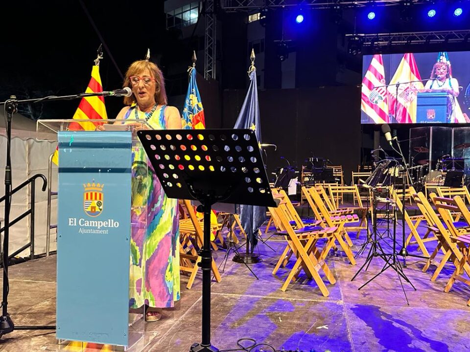 Inmediatamente después se desarrolló el acto, dirigido por la periodista luz Sigüenza, buena amiga de El Campello, donde tiene una residencia. Ella aportó su granito de arena a dar brillantez al acto, elogiando las bondades del municipio y poniendo en valor unos festejos de los que disfrutan campelleros y visitantes por igual.