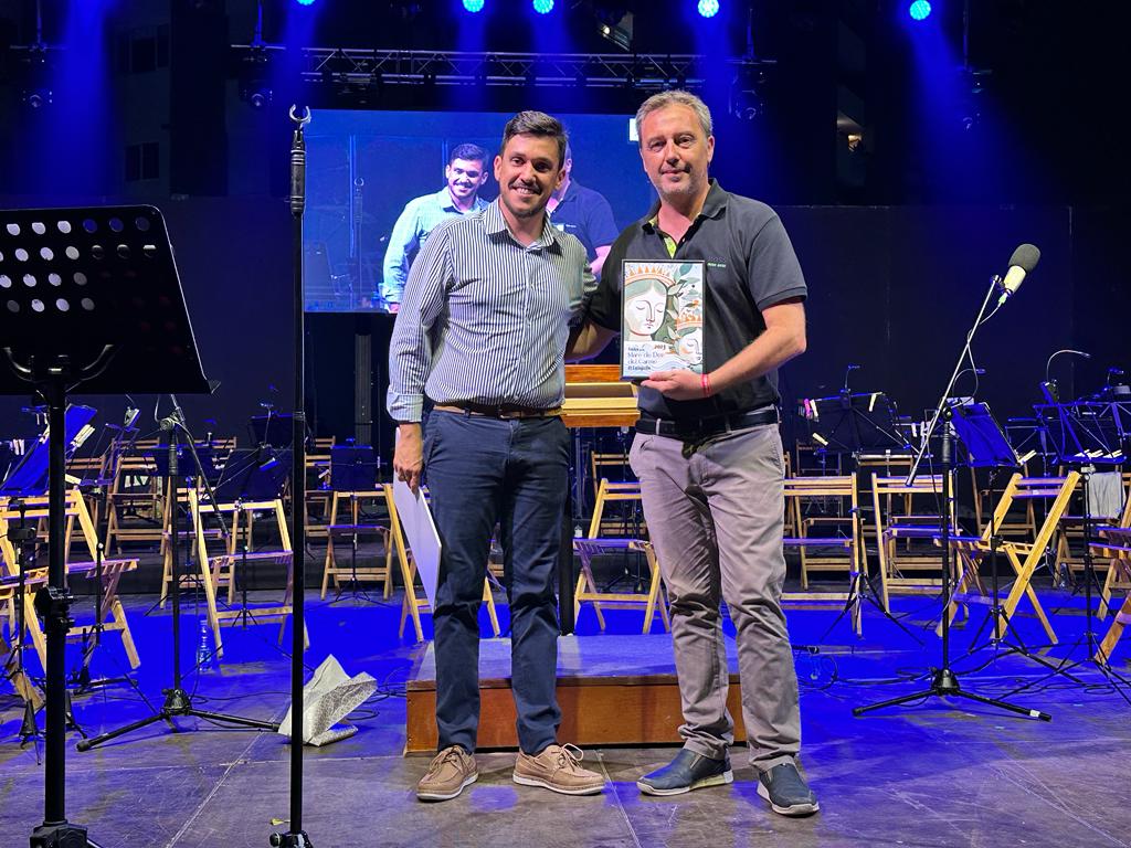 Lo primero fue entregar el premio al autor ganador del cartel anunciador de las fiestas, Sergio Iborra Colomer, que se trasladó con su familia desde Valencia para participar en el acto. La mantenedora ofreció unas pinceladas sobre la obra, mientras el alcalde Juanjo Berenguer y el concejal de Fiestas y Tradiciones, Cristian Palomares, le entregaron el cheque del premio y la placa conmemorativa.