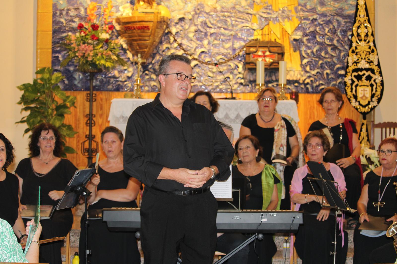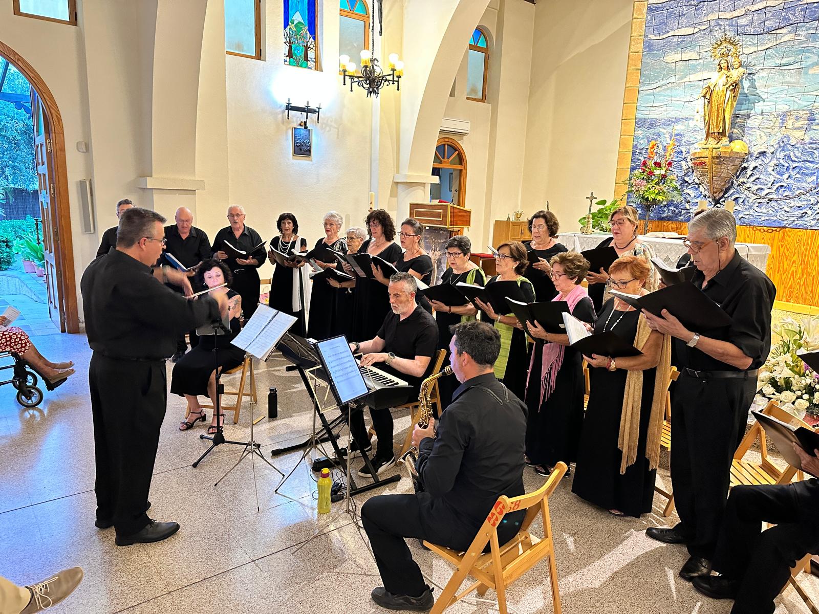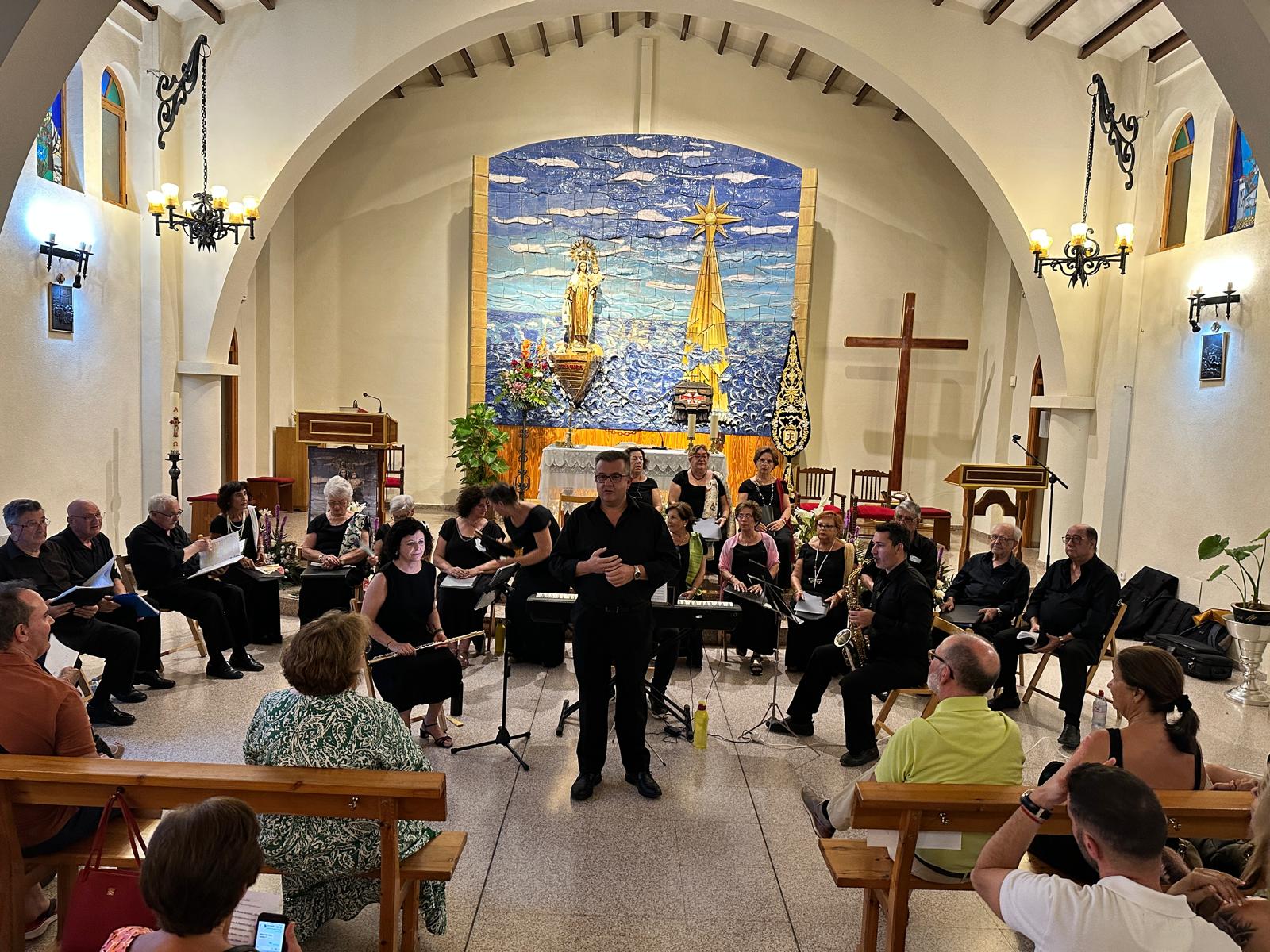 La Coral Casino de El Campello ofreció un concierto especial titulado “Cien años con el mar”, que llenó el templo de feligreses y amantes de la música, entre los que se encontraban el alcalde, Juanjo Berenguer; la concejala de Fiestas y Tradiciones, Marisa Navarro; la concejala de Cultura, Dorian Gomis, y los también concejales Yeray Hernández y María Jesús Bernabeu.