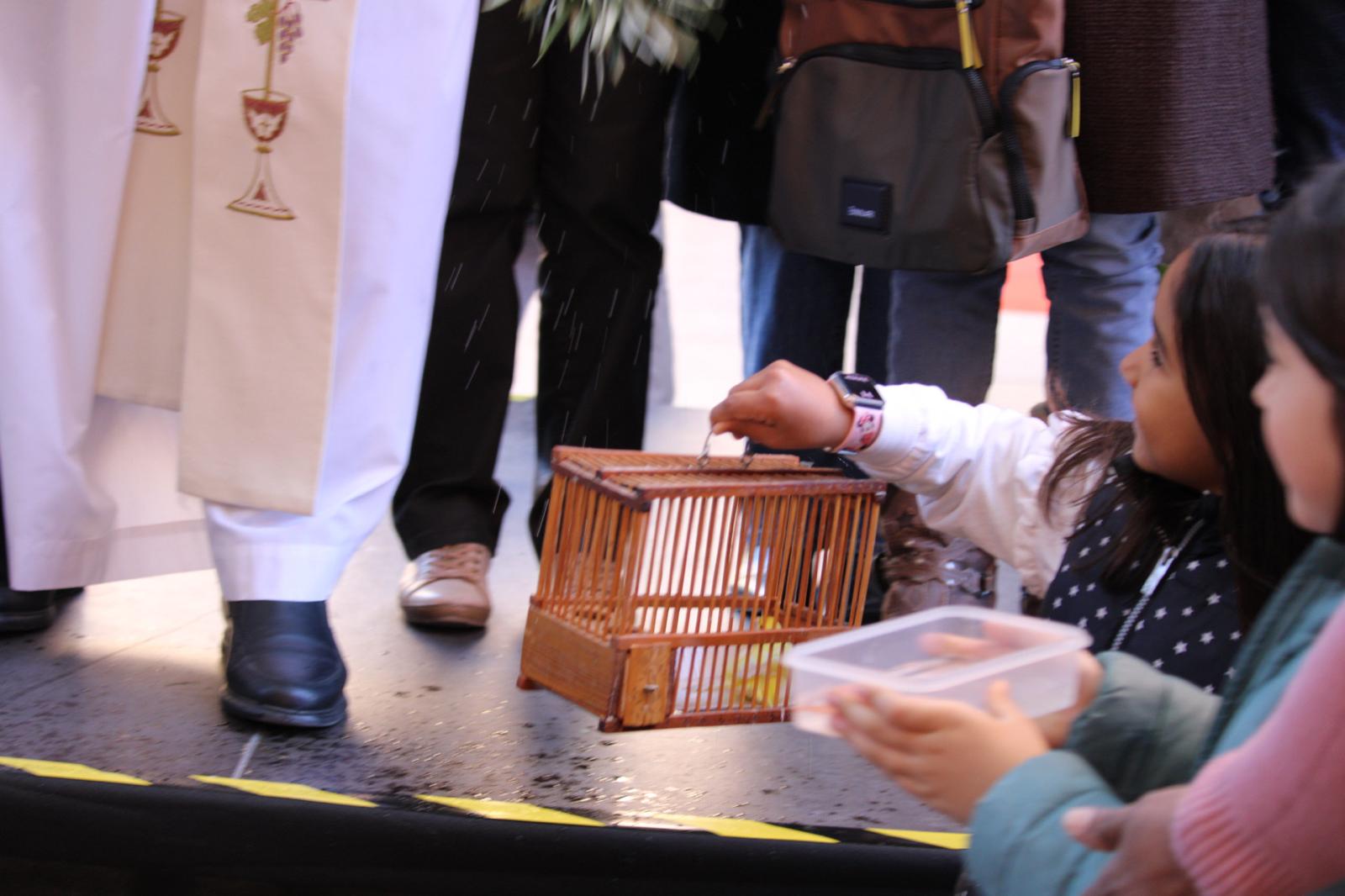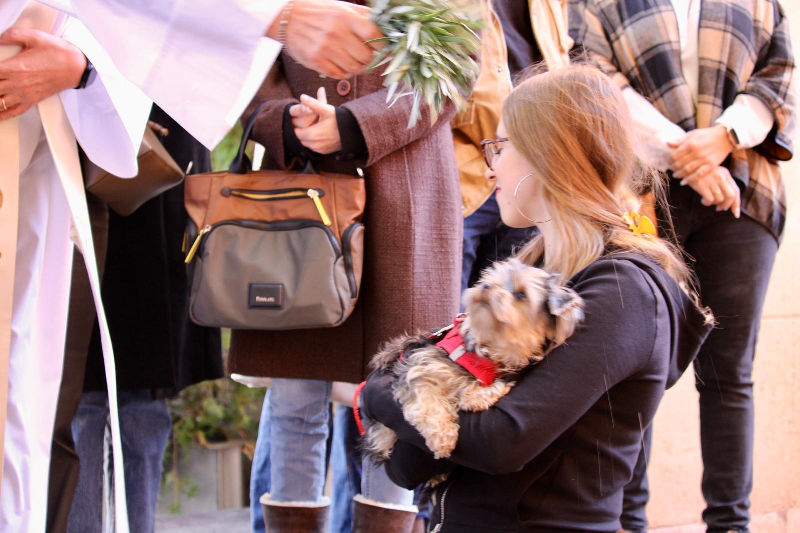 Ya en la Plaza de la Iglesia, desde horas antes de la bendición de animales se fueron concentrando las familias con sus mascotas, mientras se repartía a todos un panecillo bendecido que, según marca la tradición, deben comer los animales.