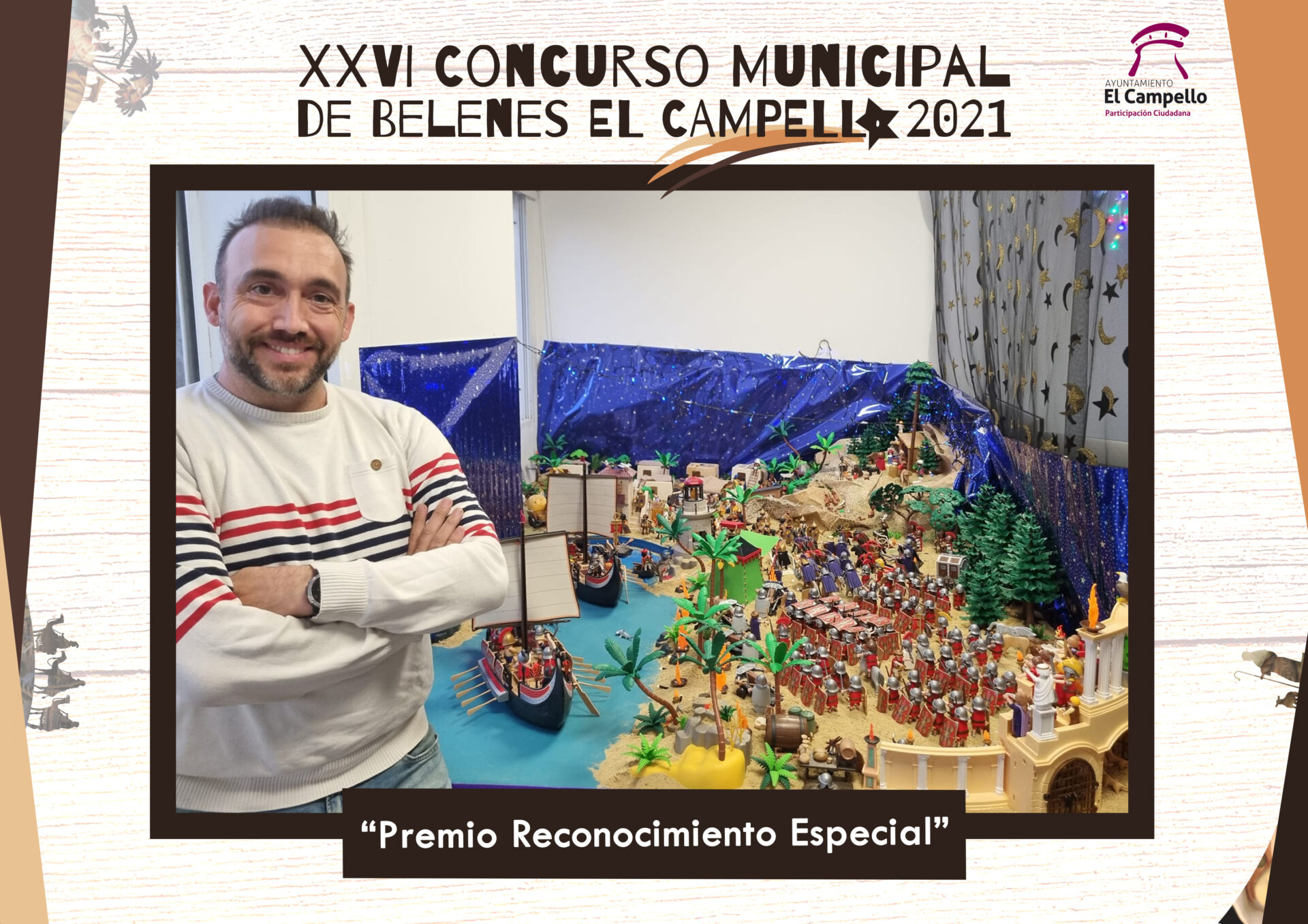El jurado decidió conceder una mención especial, por su originalidad, al Belén presentado por Rogelio Pena, compuesto íntegramente por figuras de Playmovil, que sorprendió gratamente a los evaluadores.