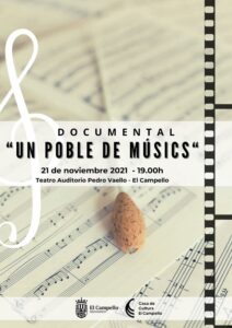 Pasado, presente y futuro de la música en El Campello. “Un poble de músics” es el título que se ha dado a un documental sobre las cuatro agrupaciones musicales del municipio editado por la concejalía de Cultura que dirige Dorian Gomis (PP), y que será proyectado en el auditorio de la casa de Cultura el 21 de noviembre a las 19:00 horas, coincidiendo con la festividad de Santa Cecilia, patrona de los músicos, que se celebra el 22 de noviembre.