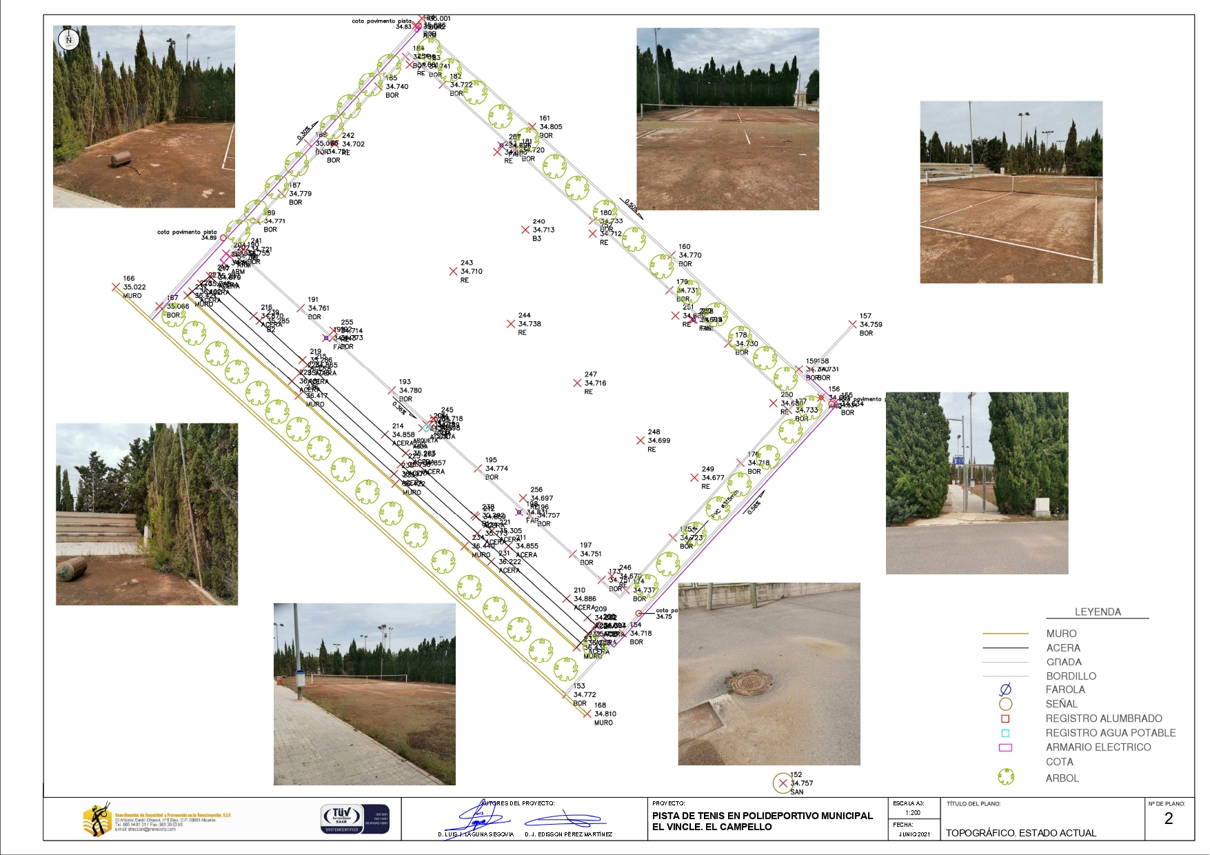 Ahora, la zona en la que se actuará se concreta en el área vallada de la pista de tierra batida situada dentro del recinto. Se opta por realizar una pista de tenis de resinas sintéticas que cumpla en planta con las condiciones de normas NIDE 2005.