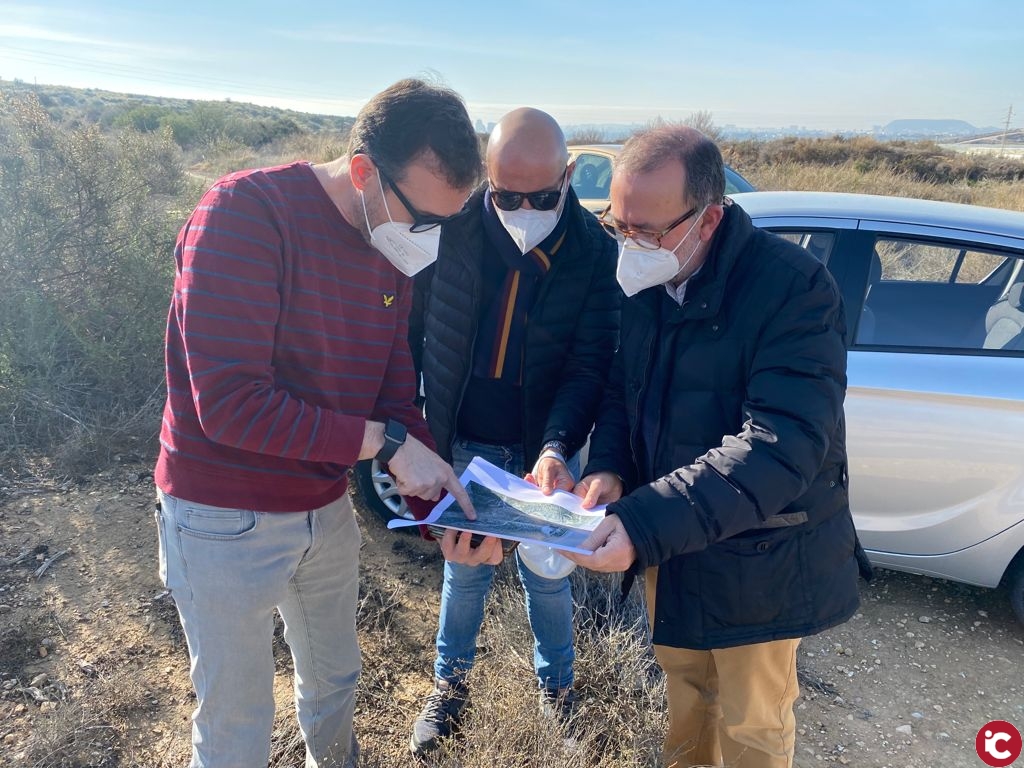El alcalde ha visitado hoy los terrenos sobre los que se erigirá el nuevo camposanto, acompañado por el jede del Servicio de Patrimonio del Ayuntamiento, Raimudo Panea; Francisco Pastor, jefe del servicio de la Oficina Técnica de Urbanismo, y el topógrafo municipal, Gabriel González. Sobre el terreno, el equipo técnico ha explicado al primer edil las características orográficas de las parcelas expropiadas, los posibles accesos, la localización idónea del área de aparcamiento de vehículos y edificio de oficinas y servicios a los visitantes, y el recorrido que tendrá el paseo perimetral proyectado, a partir del cual se ordenará el cementerio con calles y plazas.