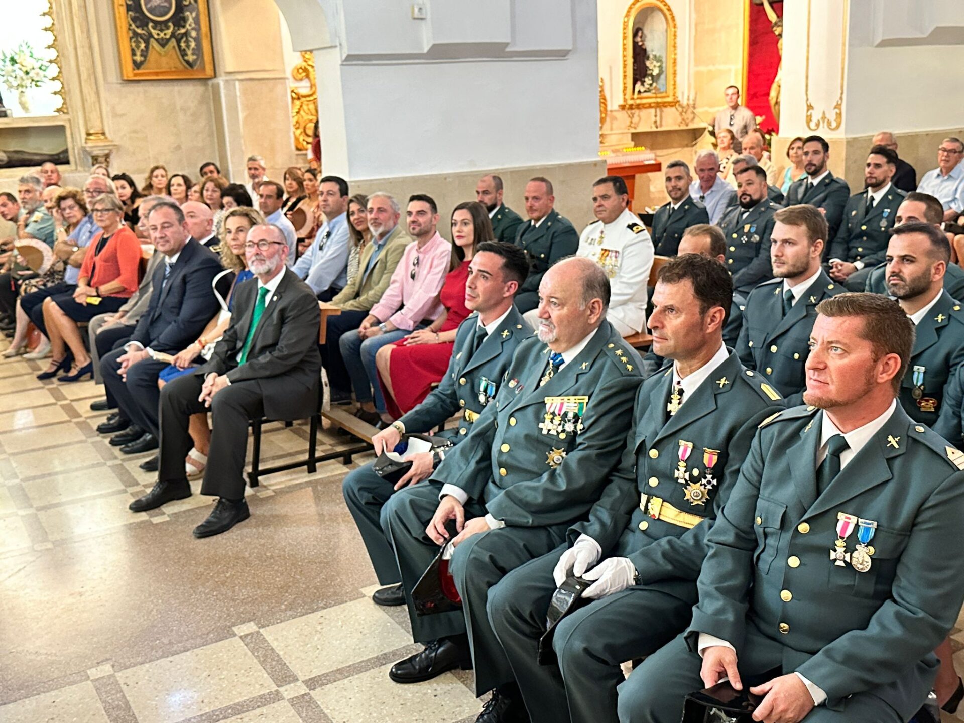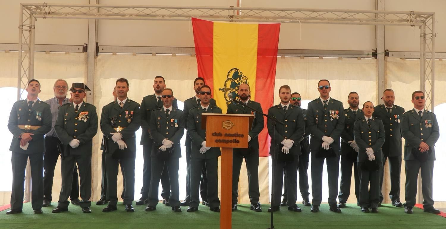 Autoridades civiles y militares, integradas por representantes del Ayuntamiento encabezados por el alcalde Juanjo Berenguer, mandos de la Guardia Civil, Policía Local, Policía Nacional y los tres cuerpos del ejército (tierra, mar y aire), participaron ayer en los actos organizados en El Campello para celebrar la festividad del 12 de Octubre, Día de la Hispanidad y de la Virgen del Pilar, patrona de la Guardia Civi.