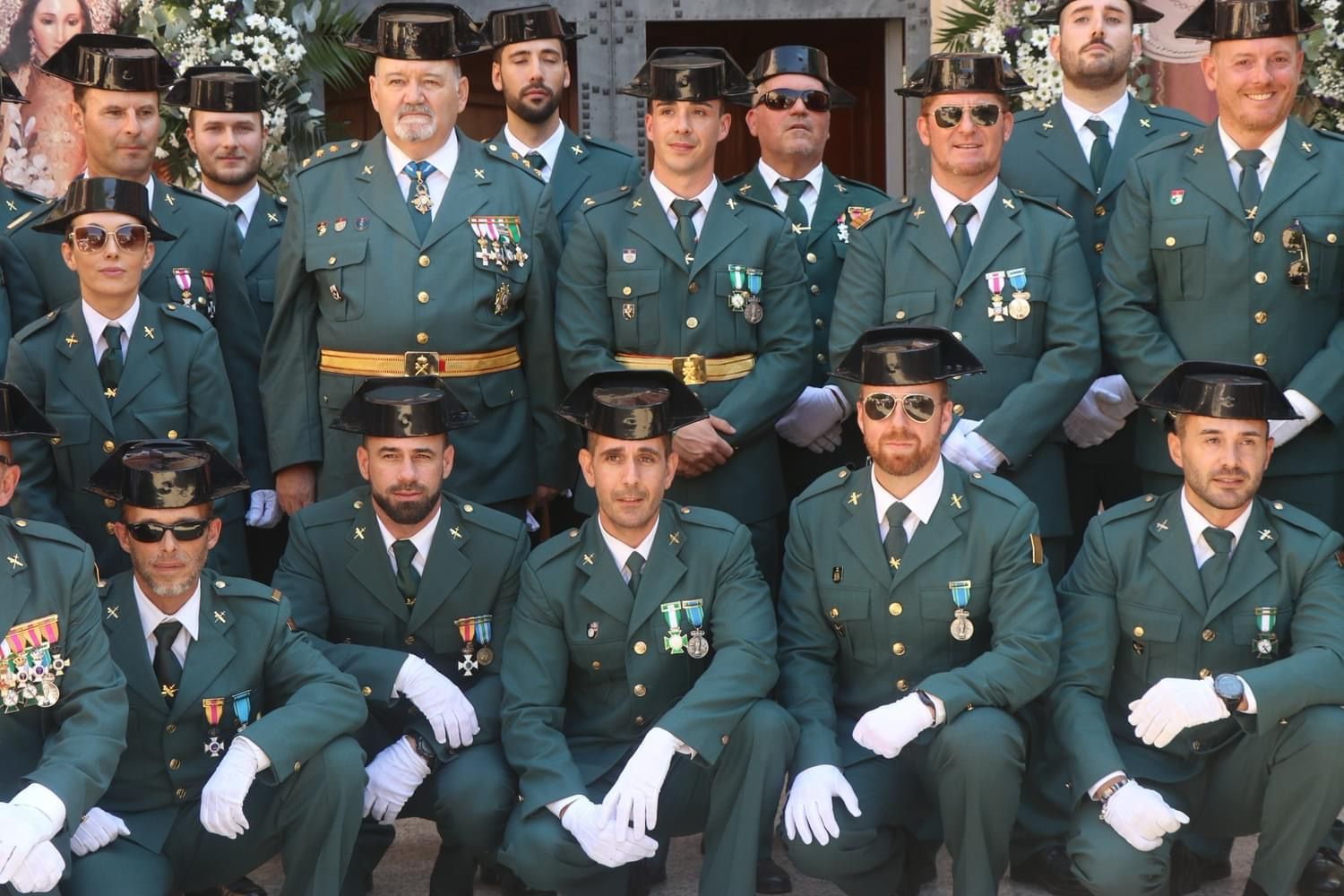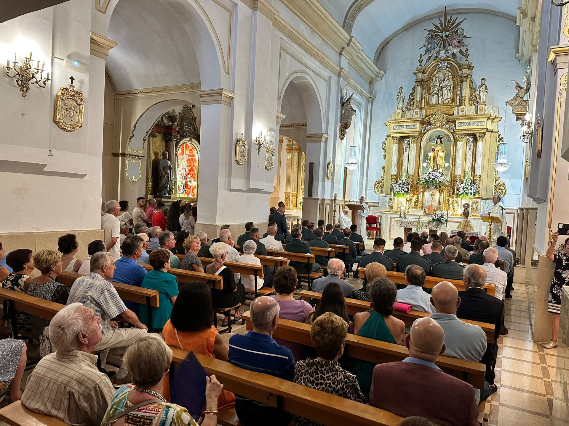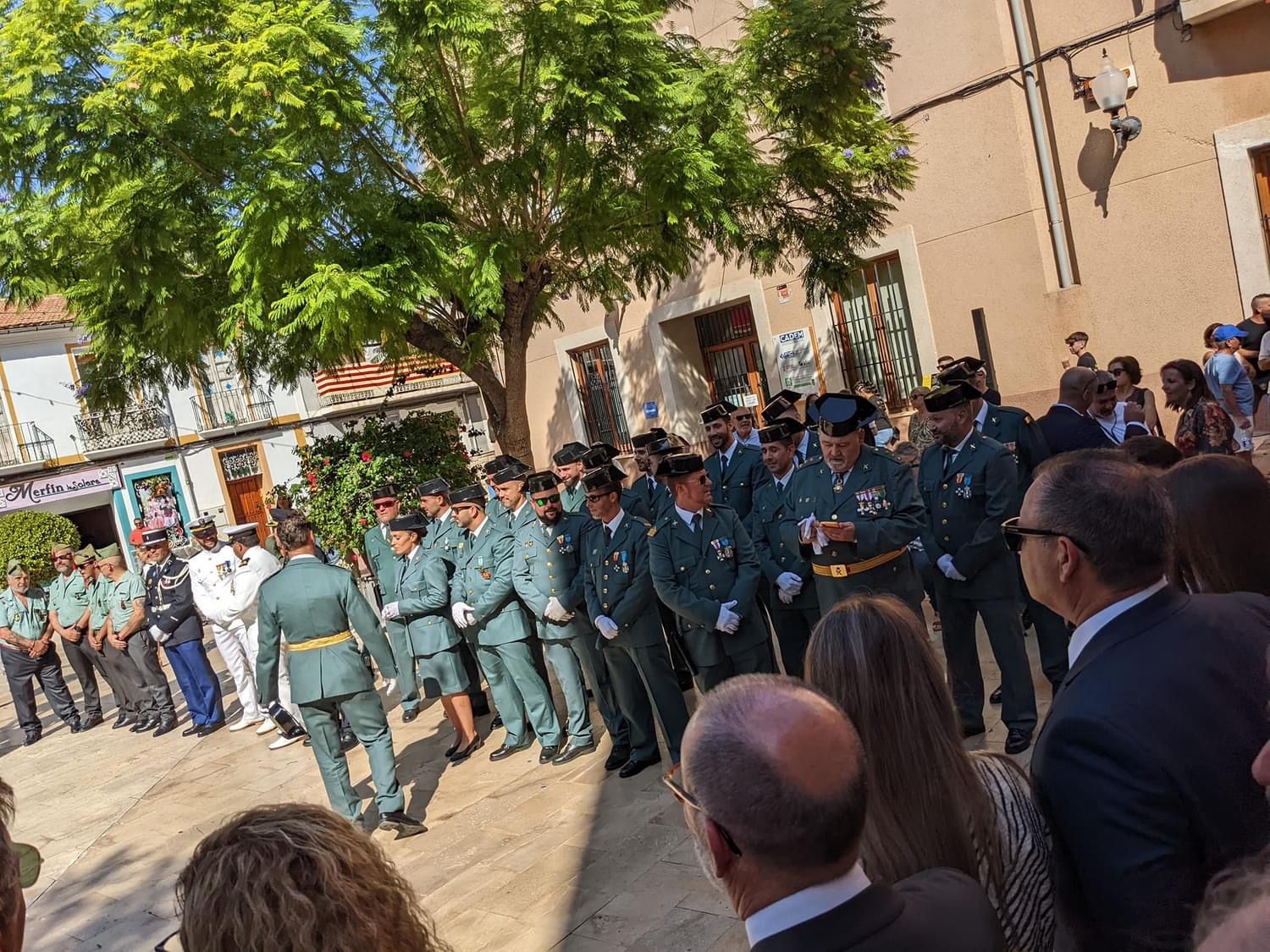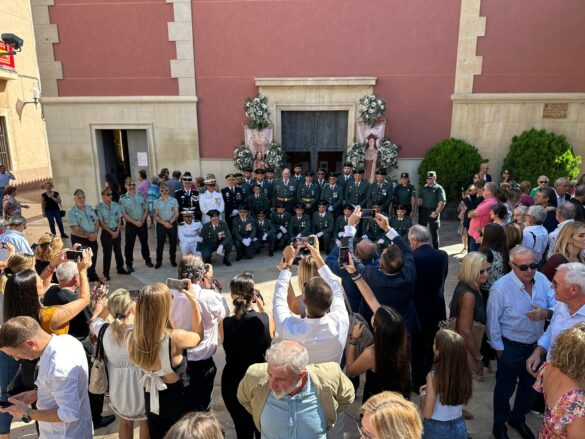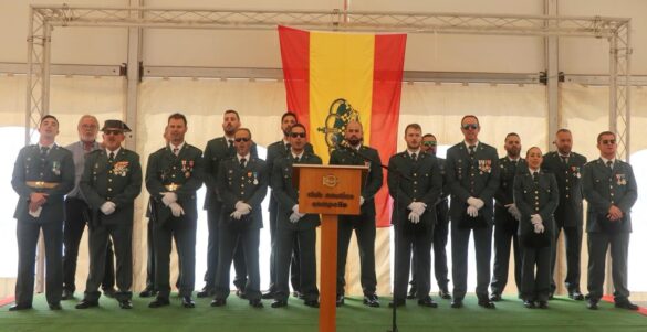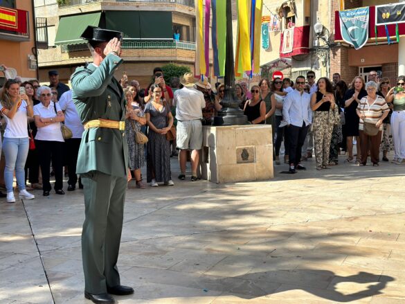 Después del oficio religioso, militares y civiles han mantenido en la misma plaza una formación para escuchar las himnos de la Guardia Civil y de España, para después asistir al lanzamiento de unos fuegos artificiales que han disbujado en el firmamento los colores de la enseña nacional.