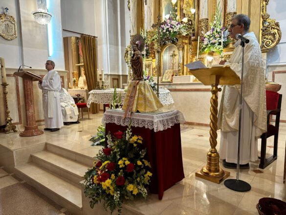 La convocatoria arrancaba a las 12:00 horas, cuando invitados y población civil se han congregado en la Plaza de la Iglesia minutos antes de que el nuevo párroco del pueblo dirigiera una misa especial.
