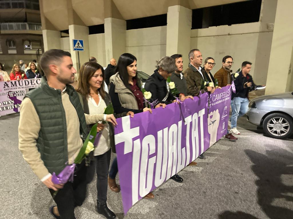 Puro clamor. Las calles y el Centro Social de El Campello acogieron en la tarde-noche de ayer los actos principales programados por la concejalía de Mujer e Igualdad para protestar contra la violencia de género y gritar bien alto que el municipio está unido en la defensa de las mujeres. El Día Internacional para la Eliminación de la Violencia contra las Mujeres se conmemoró con una marcha, la lectura de un manifiesto oficial, la proyección de varios videos de denuncia de la situación y una performance que tocó los sentimientos de los asistentes, unidos contra esa lacra social y para homenajear a las víctimas.