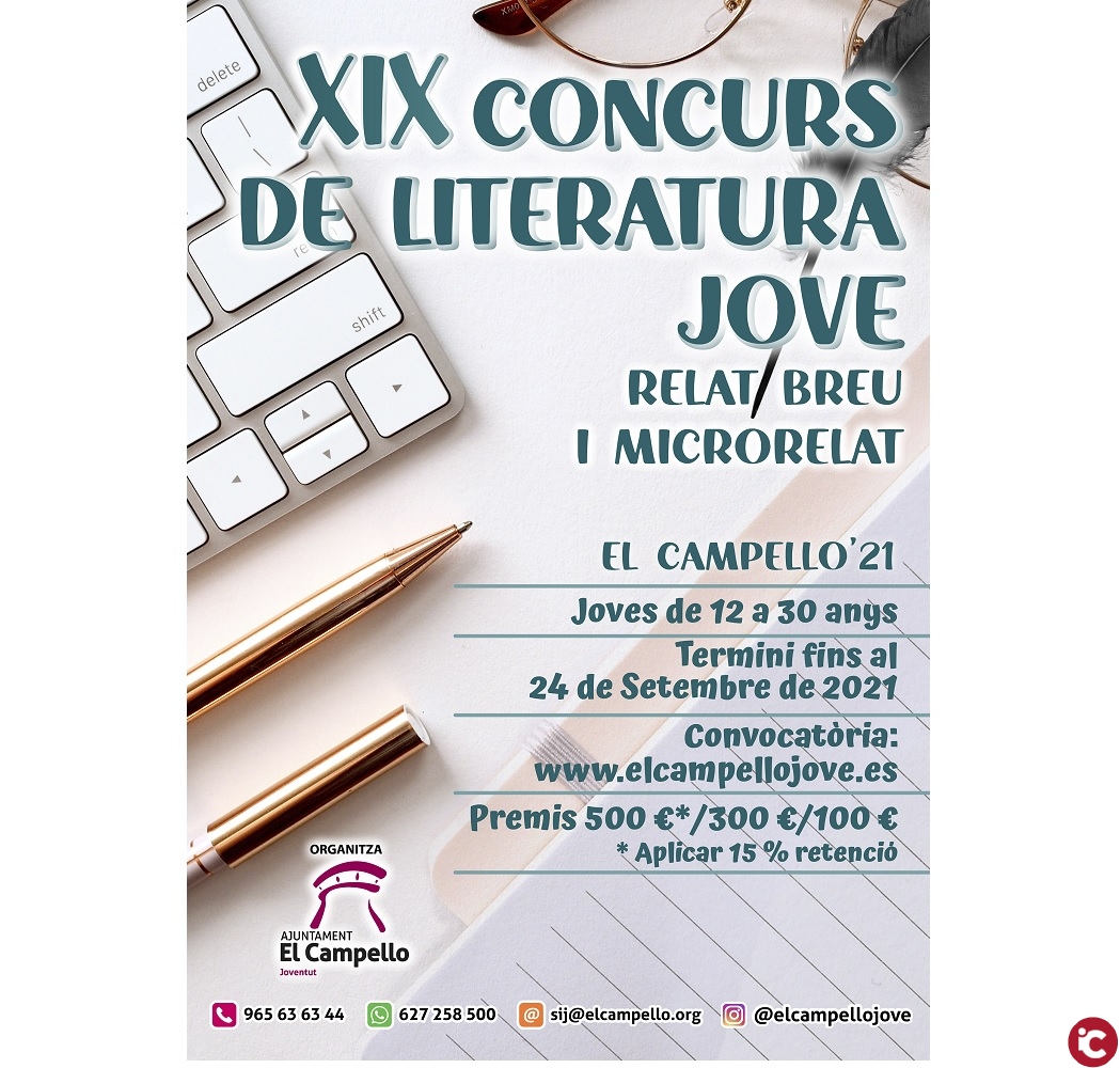 La concejalía de Juventud que dirige Cristian Palomares, convoca el XIX Concurso de literatura joven: relato breve y microrrelato, en el que podrán participar todas las personas nacidas o residentes en la Comunidad Valenciana, de edades comprendidas entre 12 y 30 años.