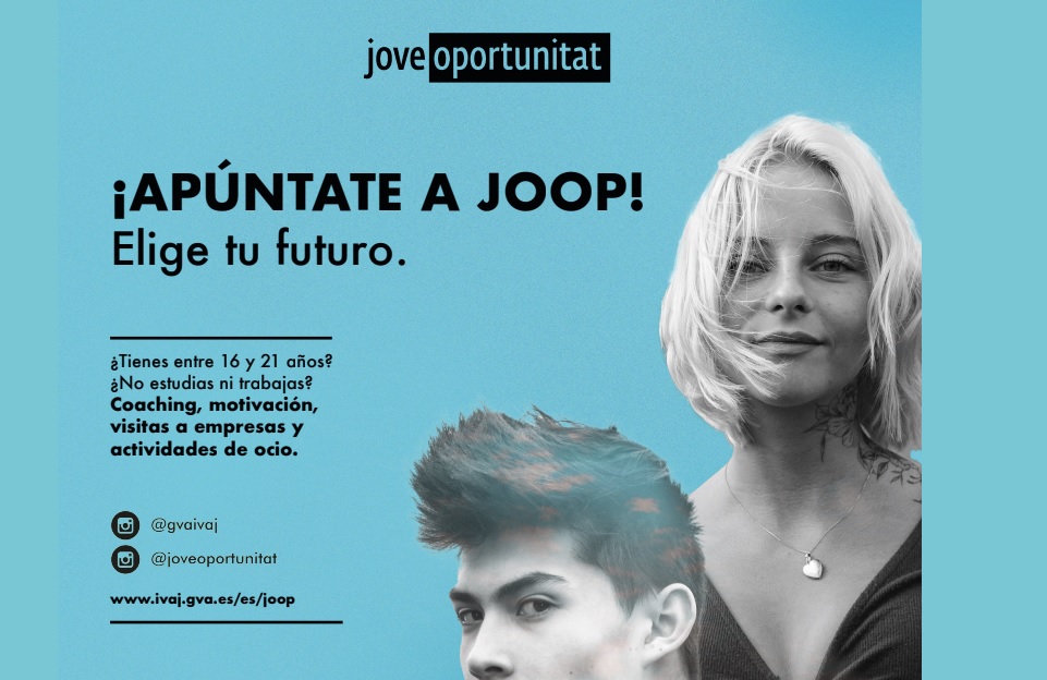 La concejalía de Juventud que dirige Cristian Palomares (PP), comunica que se ha activado de nuevo el programa JOOP, diseñado y organizado para motivar y orientar a jóvenes de entre 16 y 21 años que han abandonado los estudios, bajo el patrocinio de Institut Valenciá de la Joventud (IVAJ), y cofinanciado por la Unión Europea.