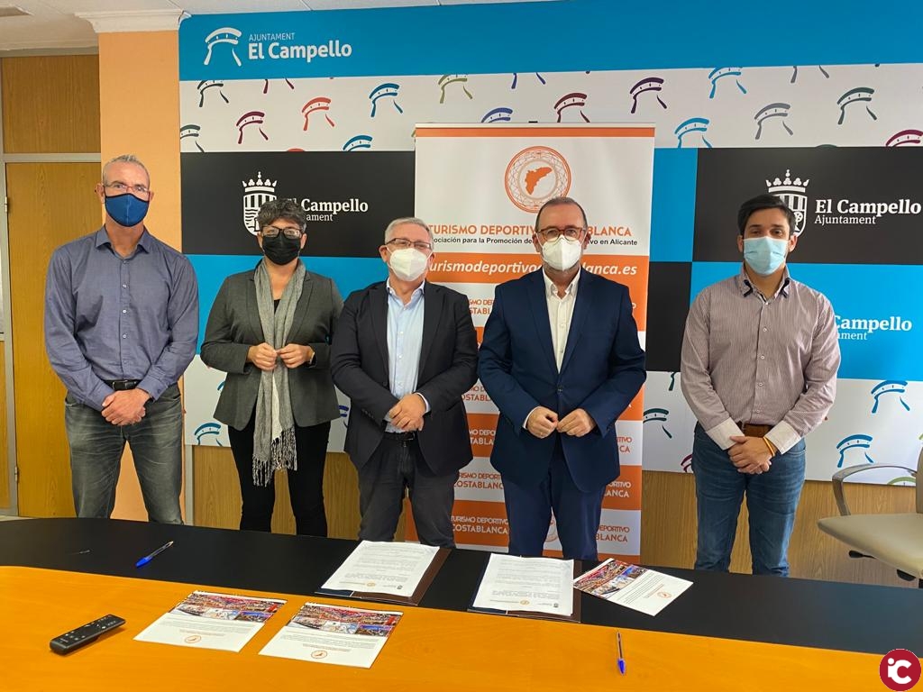 Divulgar y promocionar el entorno natural de El Campello como escenario idóneo para la celebración de eventos deportivos durante todo el año, sobre todo en las disciplinas vinculadas a la playa y el mar. Ese es el objetivo del convenio que ha suscrito el Ayuntamiento con la Asociación para la Promoción del Turismo Deportivo de Alicante, que se compromete a crear y fomentar un clúster de turismo deportivo en el que se integren e interactúen los agentes públicos y privados del sector del turismo y el deporte. El convenio, con una vigencia inicial de un año, ha sido suscrito por el alcalde Juanjo Berenguer y el presidente de la Asociación, Francisco Fresno Llopis.