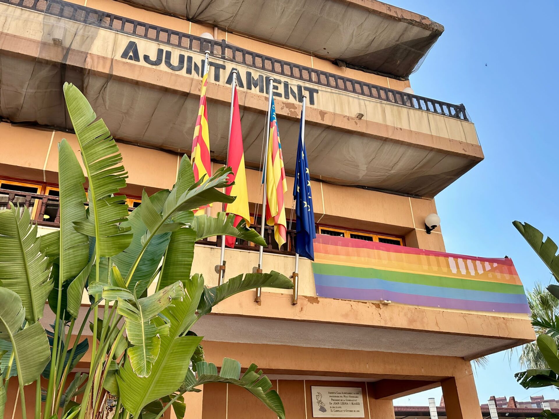 La bandera LGBTB+, más conocida como “del arcoíris” , que representa la diversidad y libertad sexual en el mundo, ha sido instalada por unos días en uno de los balcones principales del Ayuntamiento de El Campello, que se suma así a la conmemoración del Día Internacional del Orgullo LGBT+ (lesbiana, gay, bisexual y transexual), también conocido como Día del Orgullo Gay, que es mañana 28 de junio.