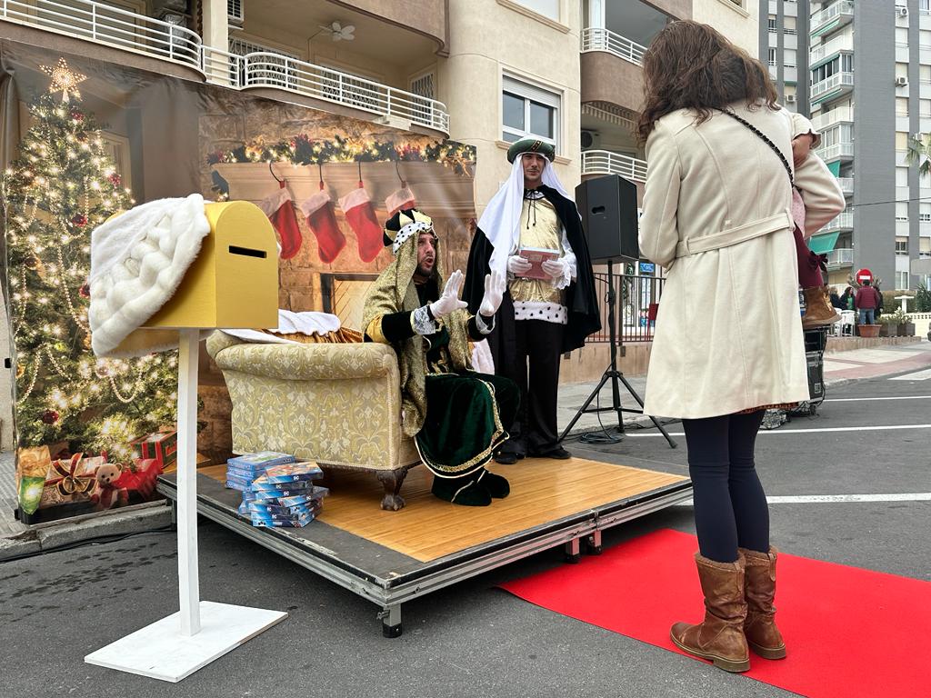 Los rostros de ilusión y nervios de los más pequeños de la casa bien valía la visita. El cartero de Melchor, Gaspar y Baltasar ha estado sentado en su trono instalado en la avenida de Alicante, y durante unas horas los niños han disfrutado además de juegos y actividades. También han acudido a la cita un grupo de alumnos de APSA.